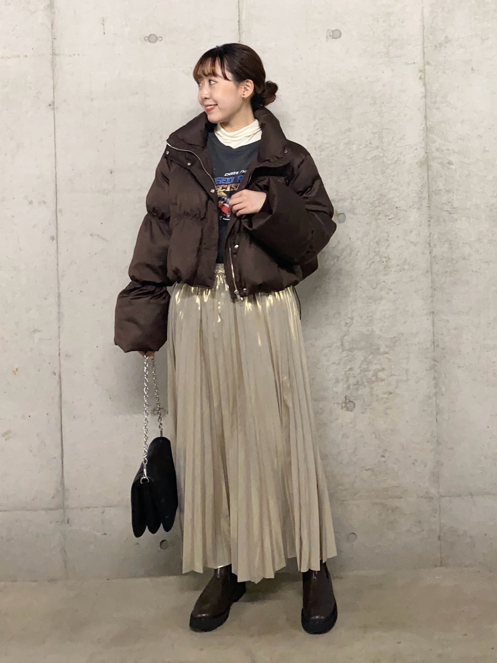 上品な印象なプリーツスカートを、クロップドダウンとロンTでカジュアルダウンさせてみました〜!!