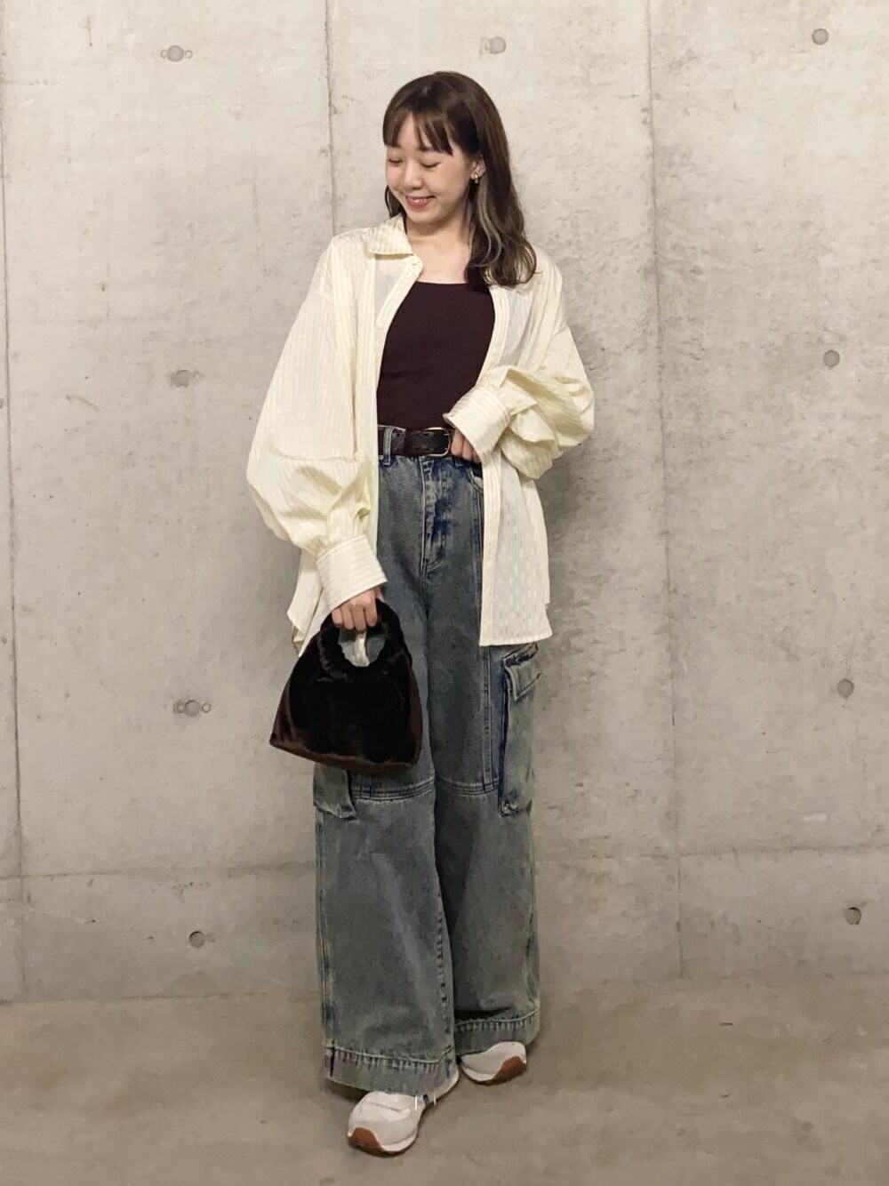 インナーにはブラウンのキャミを選びました!!春夏カラーのアイテムと合わせてもグッと秋らしく決まるので、お手持ちのアイテムとの着回しがしやすいです◎今買うならブラウンキャミが断然おすすめです🥹✨️