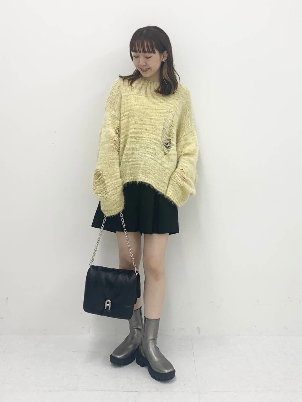 レモンのような明るいイエローなので、秋冬コーデを元気な印象にしてくれます◎