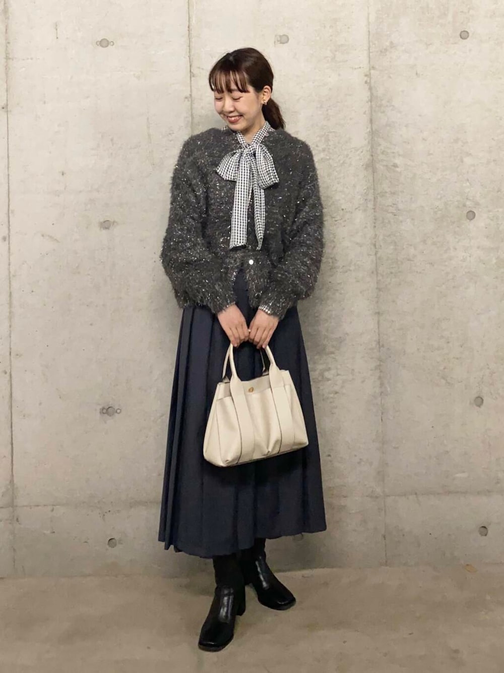 ボウタイブラウス×プリーツスカパンのコーデをほどよ〜くカジュアルダウン!