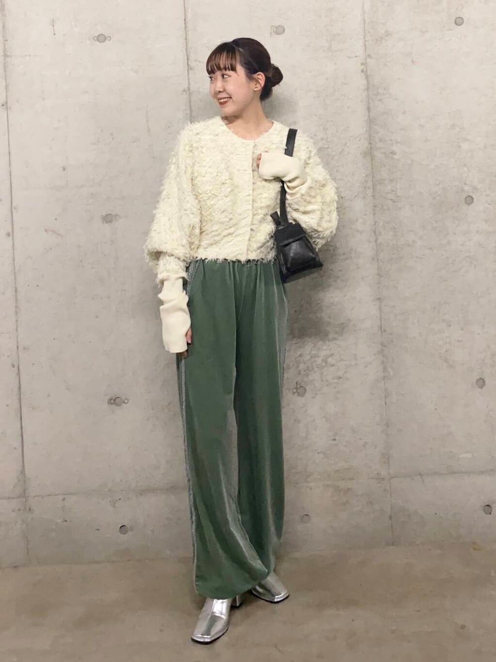 ベロア生地でサイドラインがめちゃかわです!形がほぼストレートなのでこちらもどんなトップスとも合わせやすいです🥰