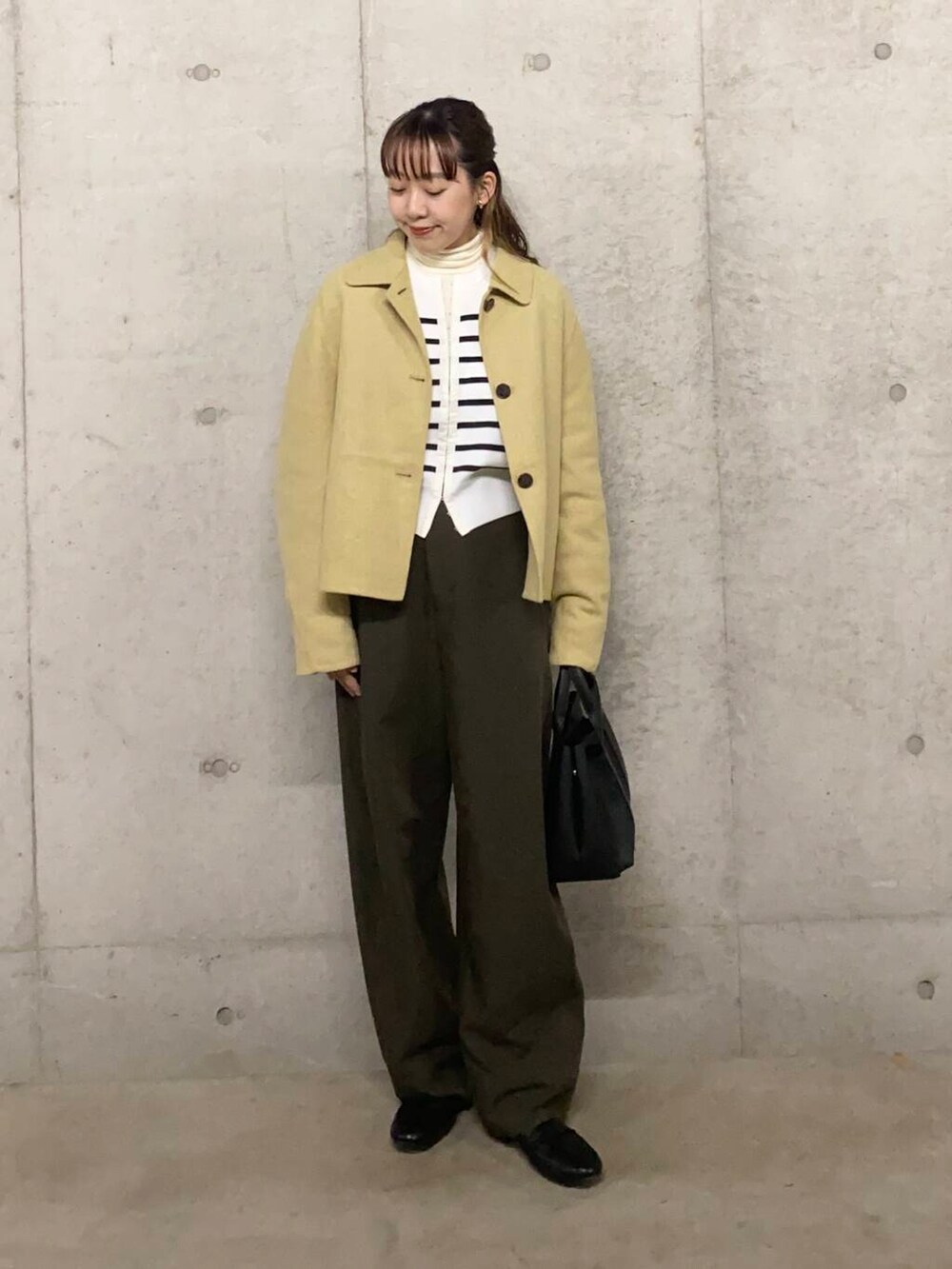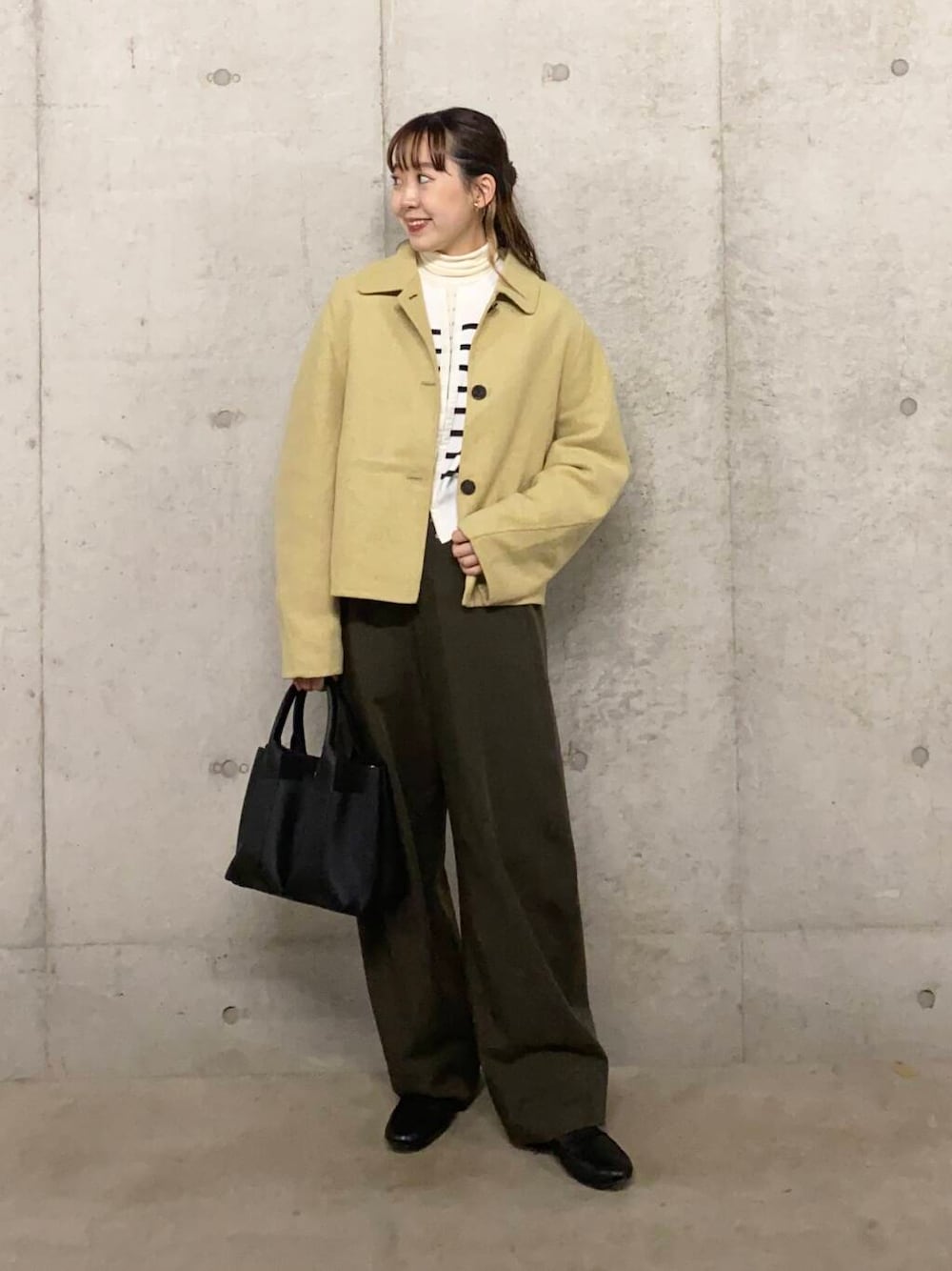 コートは色と形、丈、すべてが全世代に刺さる万能アイテムです〜!🥹✨️コロンとした襟がアクセントで、丈が長すぎないため様々なスタイリングと合わせやすい🥳