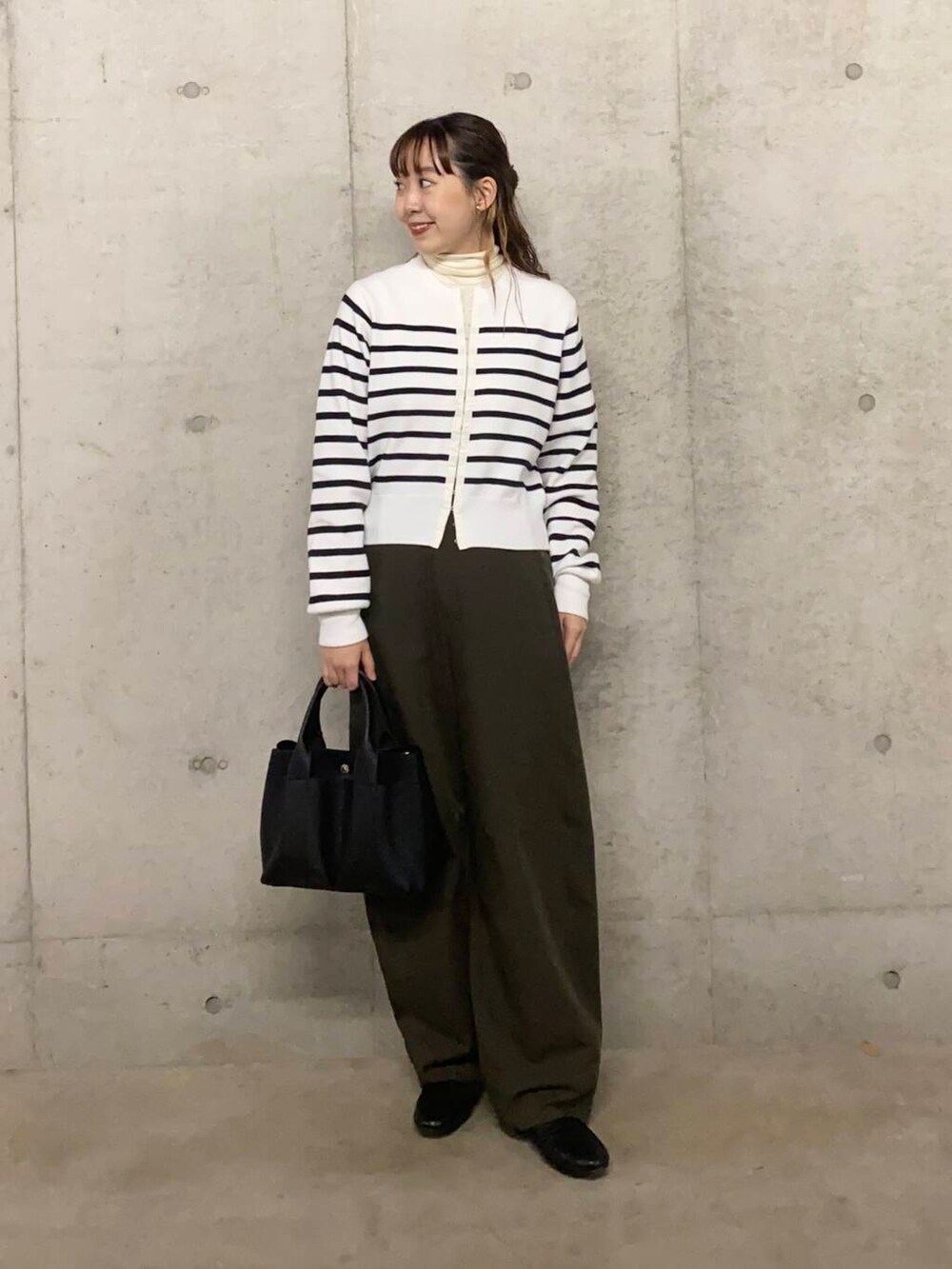 カーディガンはシンプルなクルーネックですが、ホックで調整して少し開けて抜け感を出しても可愛いです〜!!ホックが細かいため、よりお好みで調整がしやすいです🙆♀️