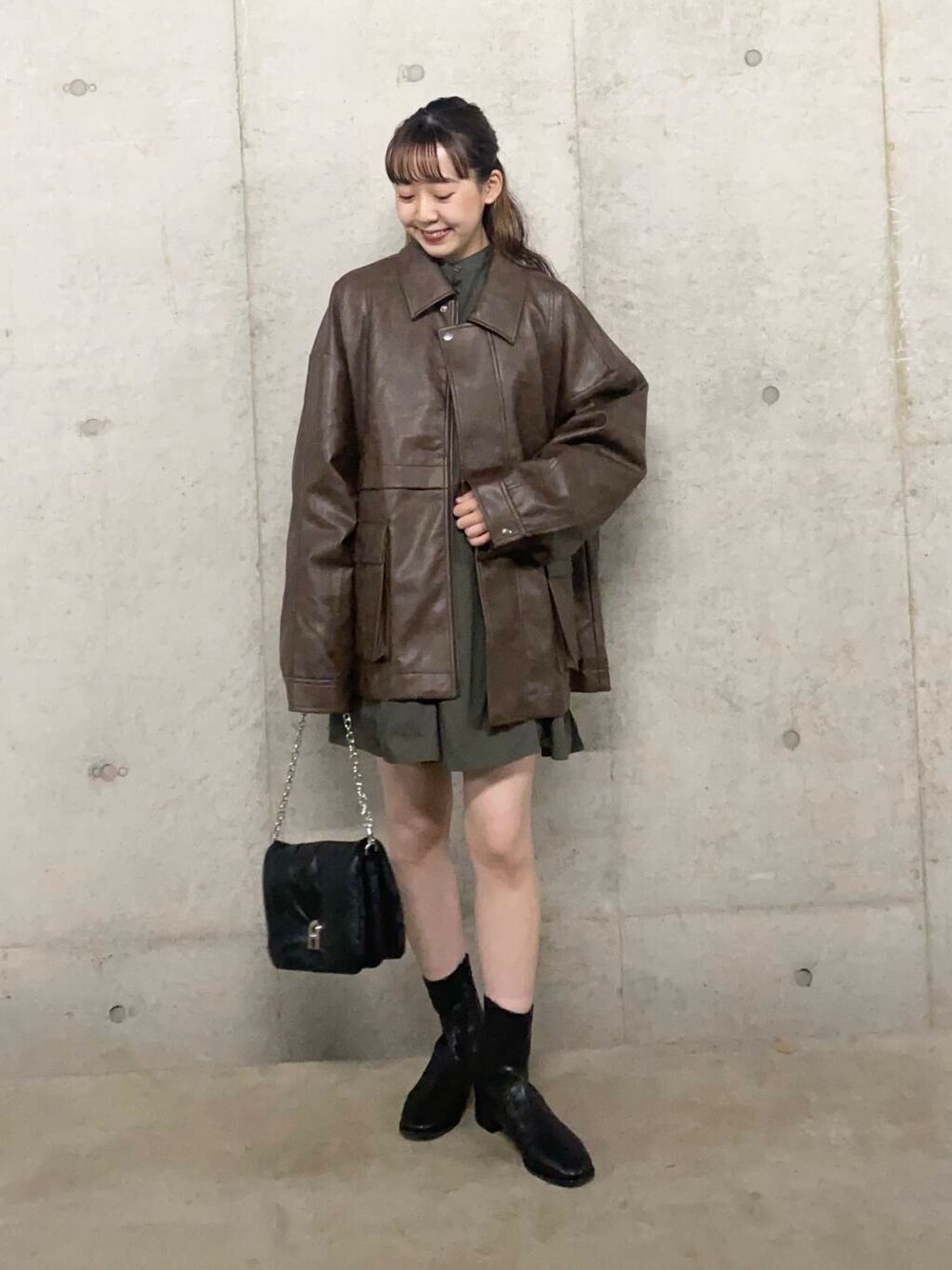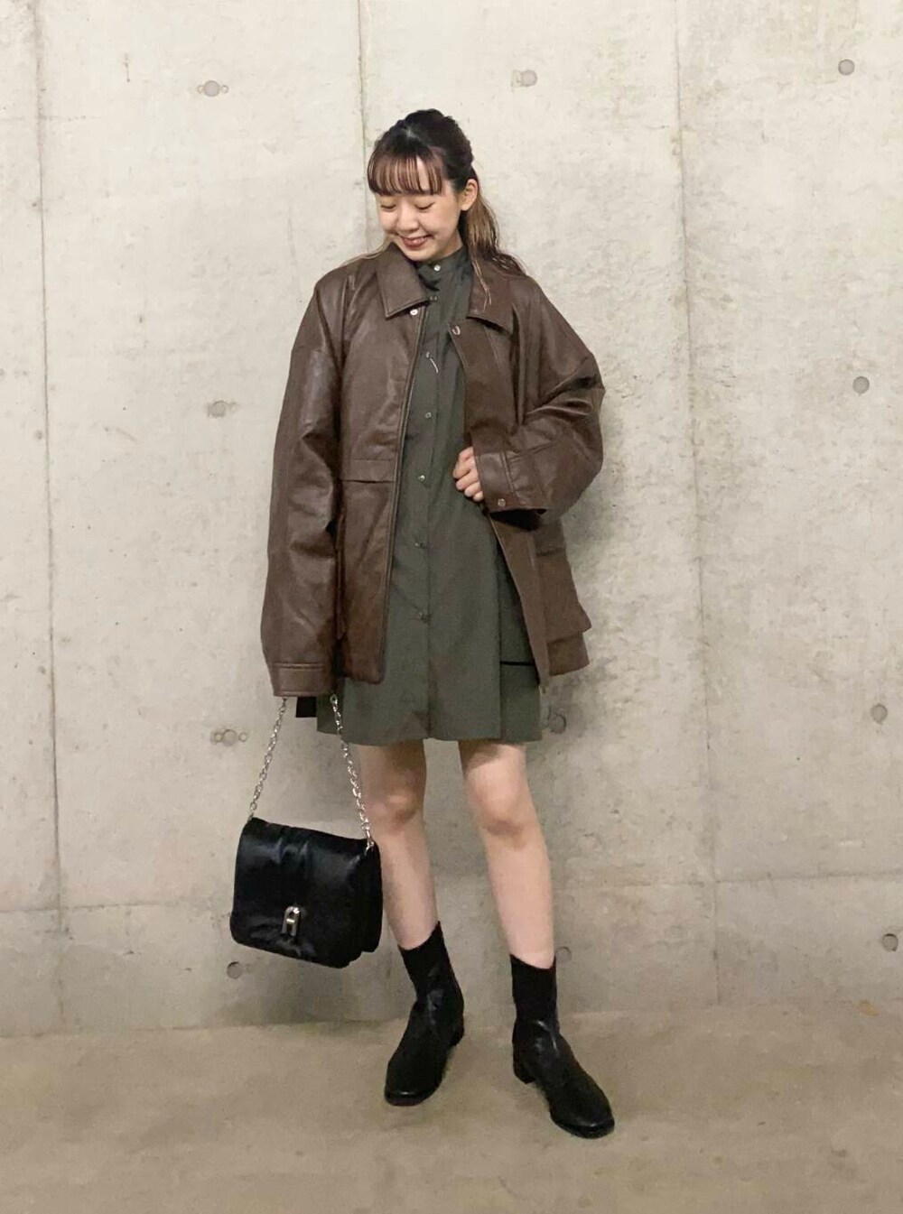 ミニワンピをチャコール×ブラウンで少し落ち着かせれば大人かわいい印象に😍🙆♀️
