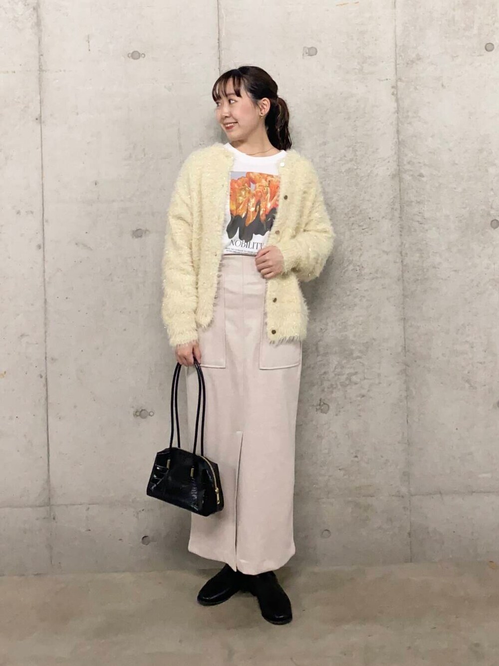 シャギーニットは可愛いだけでなく、少し長めの丈なので腰周りもカバーできて嬉しいアイテムです☺️