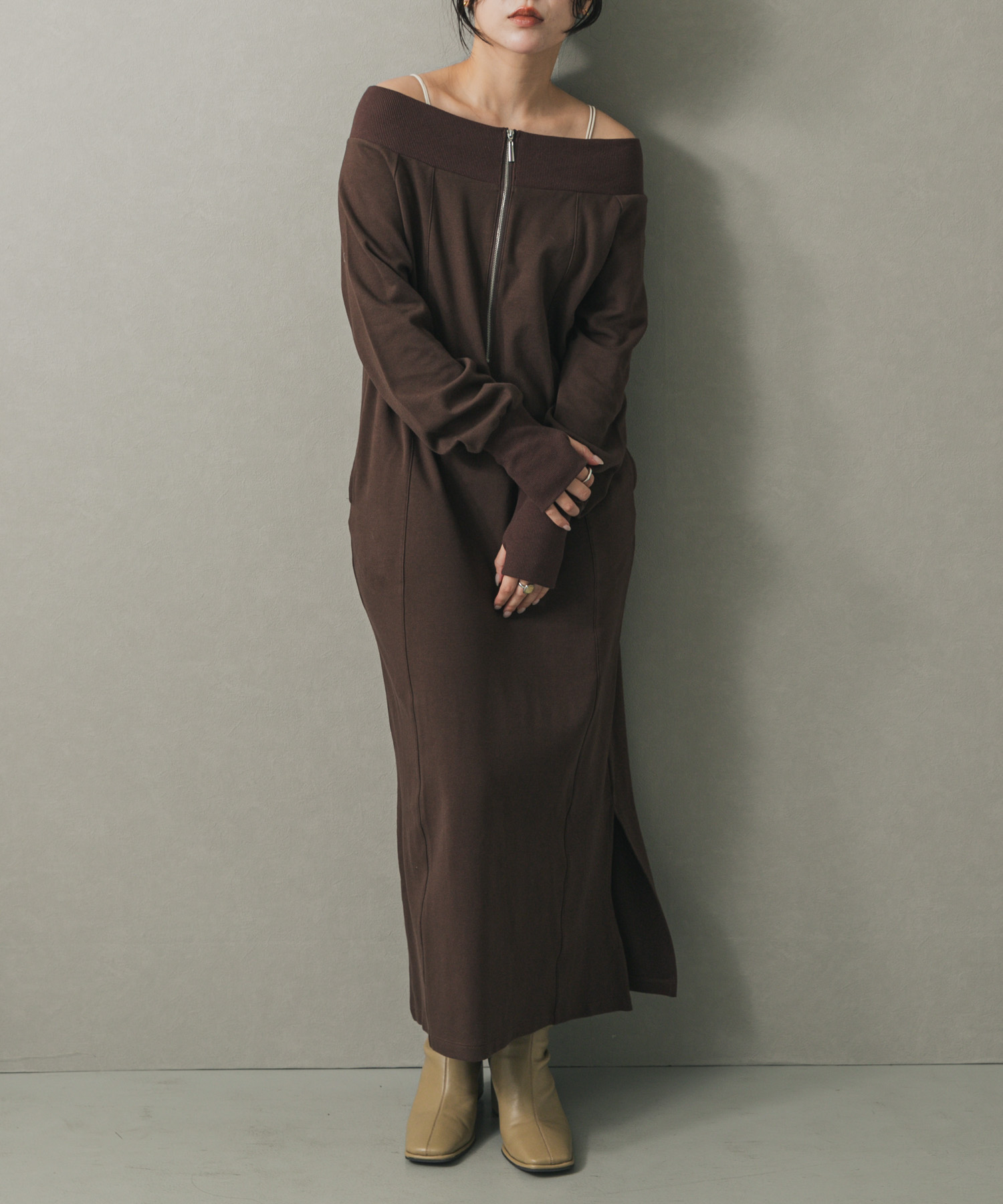 SENSE OF PLACEオフショルハーフジップワンピース