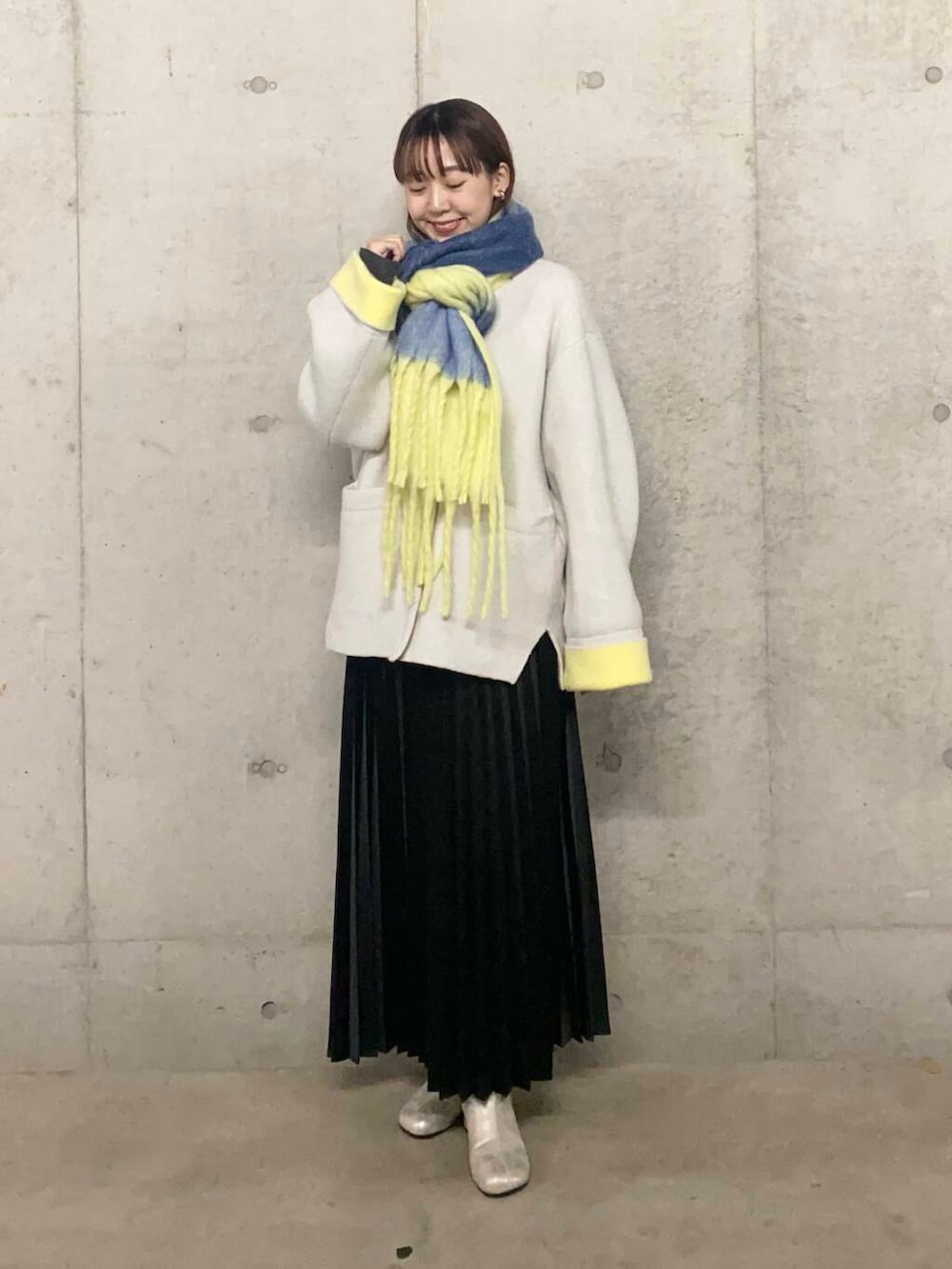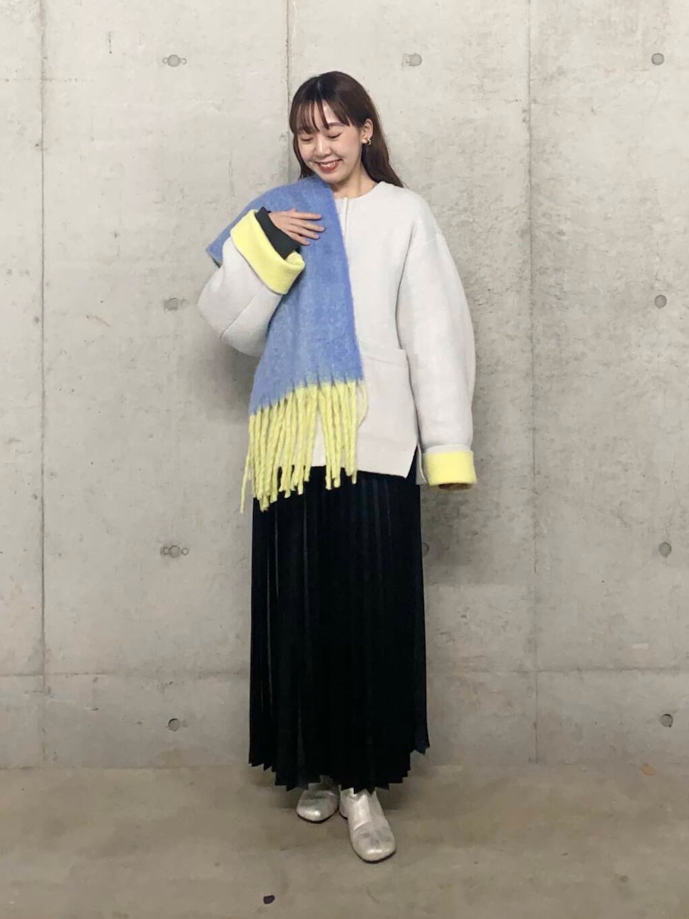 バイカラーニットコートの袖のお色と小物のお色を合わせるだけで、100000倍可愛いです〜!!😍😍😍😍😍