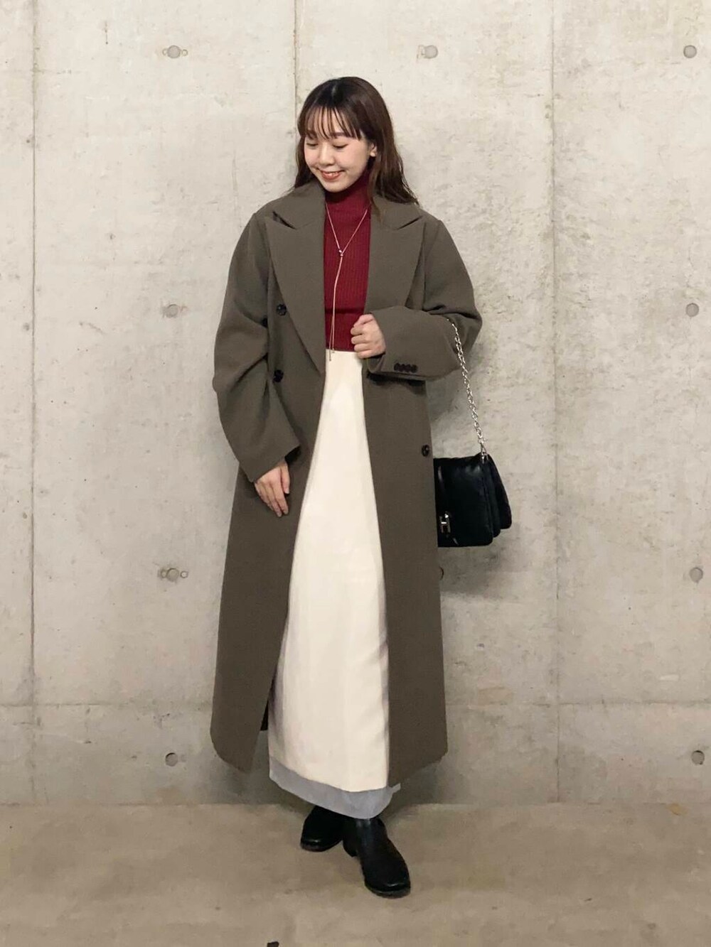 くすみレッドを取り入れて、ダブルコートとオーガンジーのスカートで上品さアップ😍⤴️