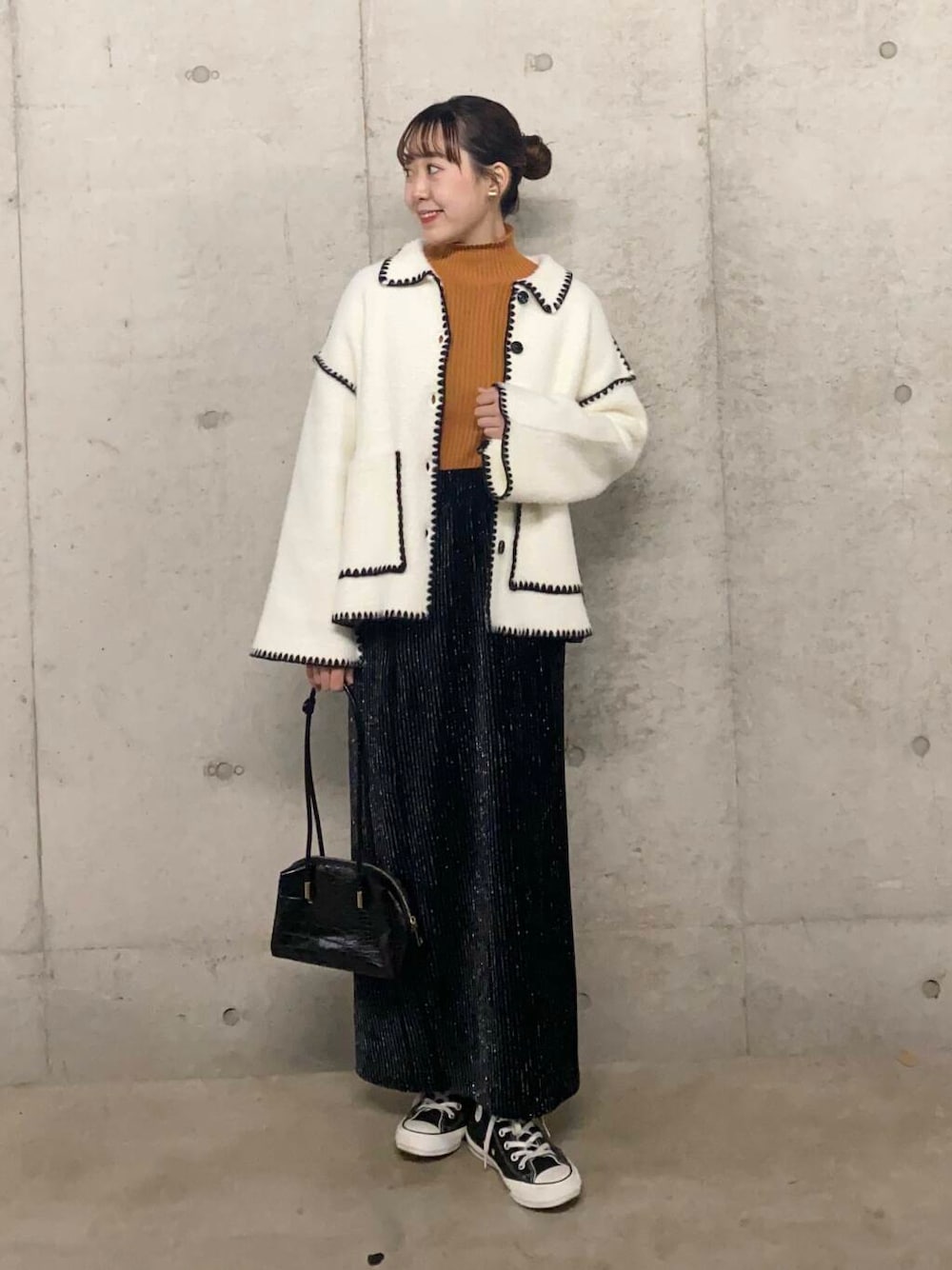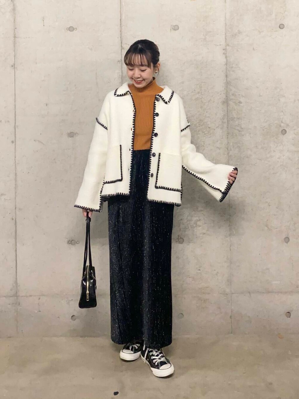 ニットはオレンジのカラーが可愛いので1枚でも良し、重ね着しても映えて良しな万能アイテム🥺✨️✨️ギフトにもおすすめ🙆‍♀️