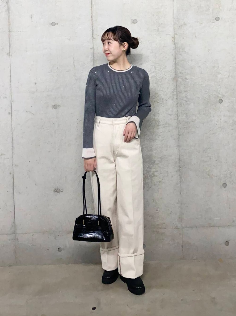 低身長さんもバランスが取りやすく、ほぼストレートな形なのでどんなトップスとも合わせやすいです☺️✨️