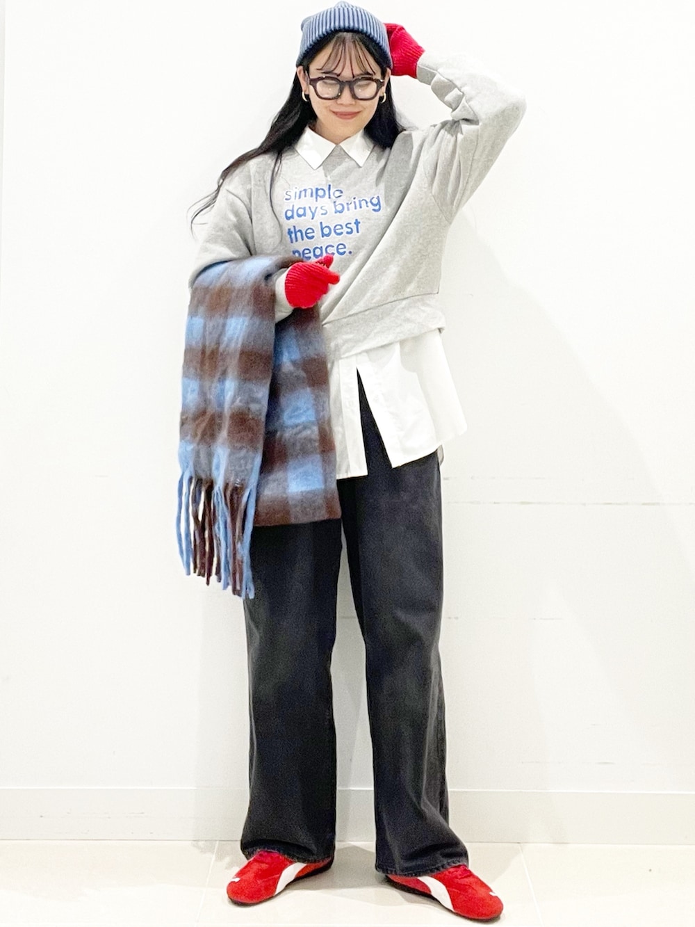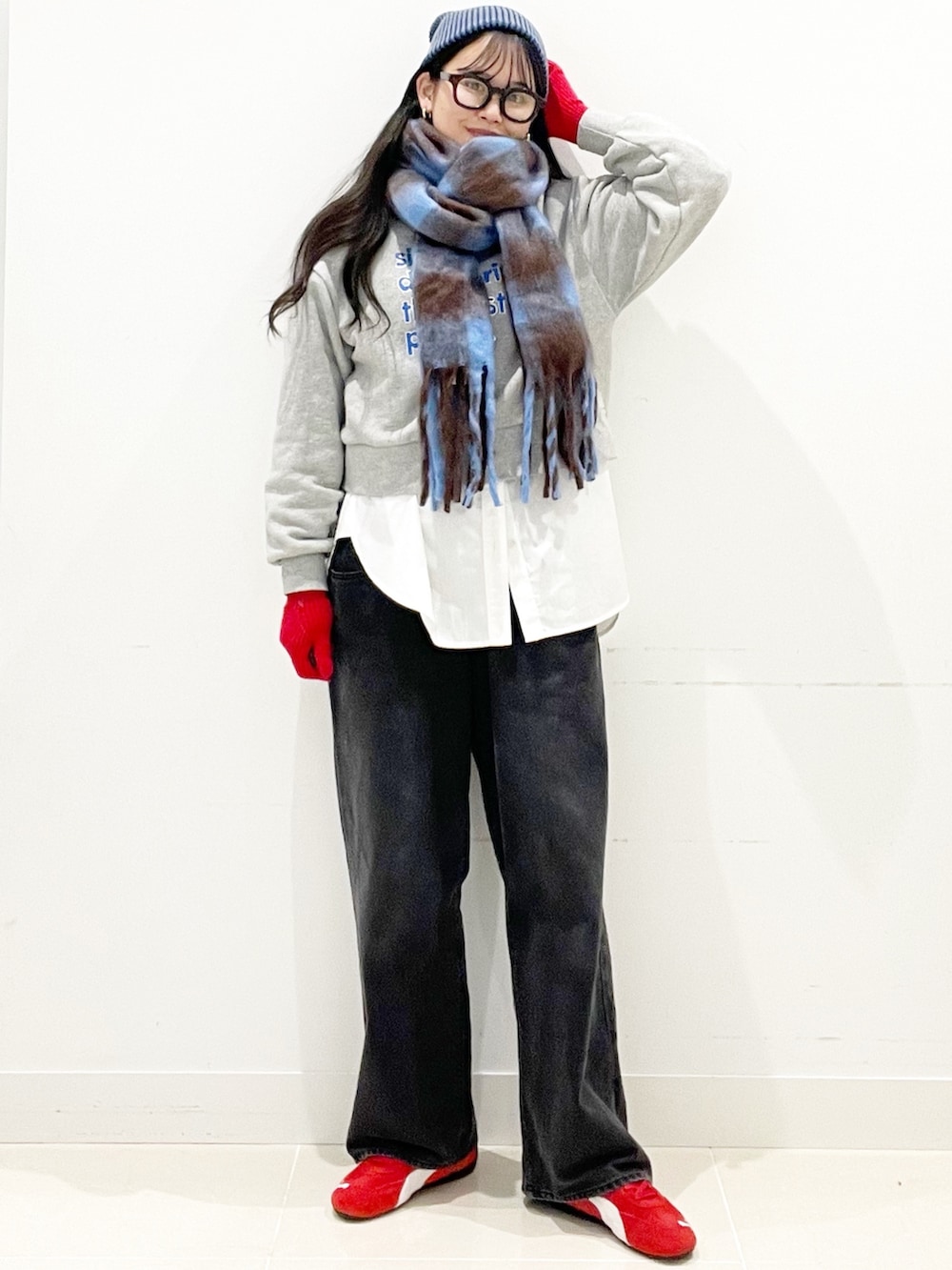 SENSE OF PLACEブロックチェックボリュームマフラー- 着用カラー: