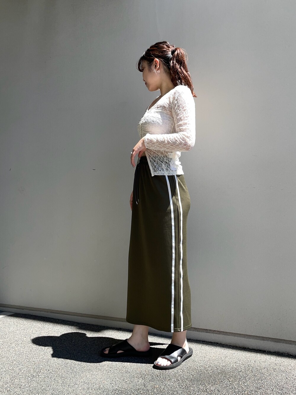 レースの甘めトップスとカジュアルスカートを合わせて、甘辛なコーデを組んでみましたෆ.*・゚