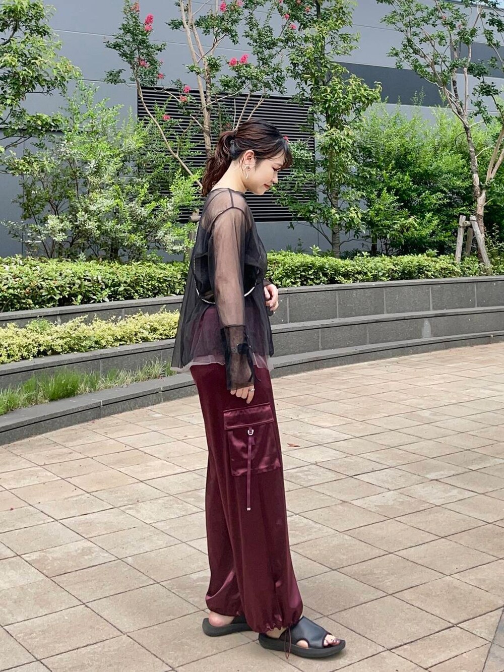 リアルバイのサテンカーゴパンツは、高身長さんでも履いていただける丈感で、カジュアルすぎないアイテムです!