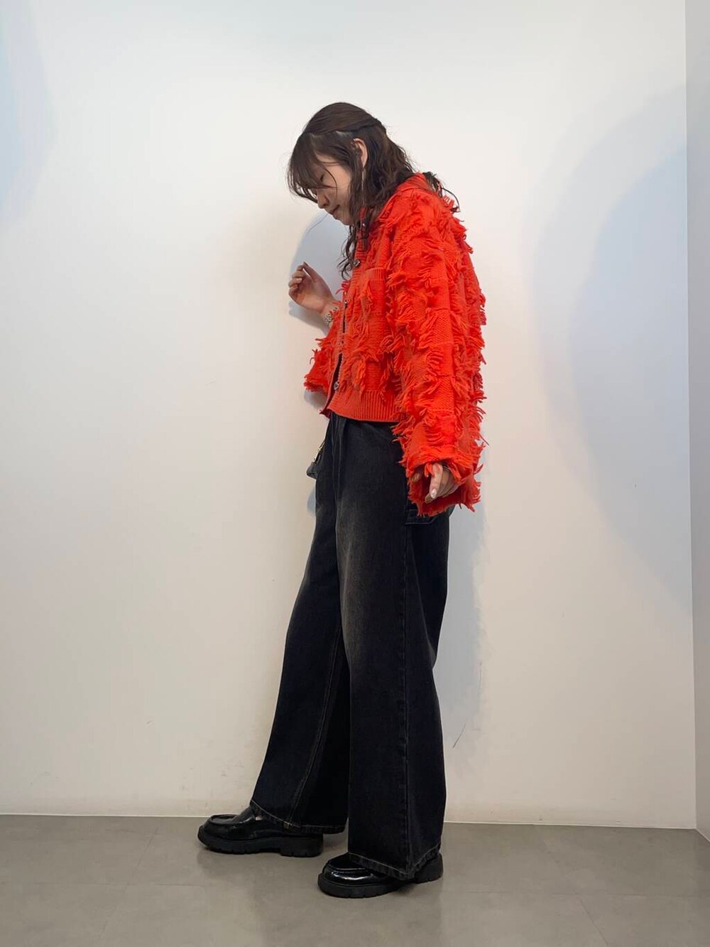 パキッとカラーが可愛いニットジャケット×ワイドデニムコーデです!