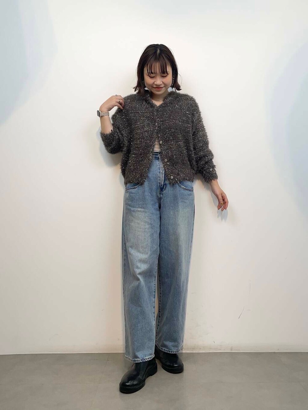 店頭でも大人気なラメシャギールーズセーターは、前を開けて着てもかわいいので、その日のコーデに合わせて着用いたたけますෆ.*・゚