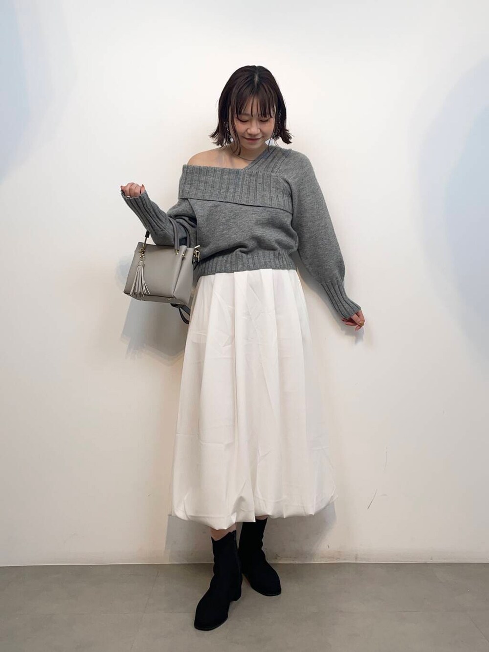 オフショルと2wayで着られるこちらのニットは、キレイめにバルーンスカートと合わせて大人甘コーデに⸜ ෆ ⸝