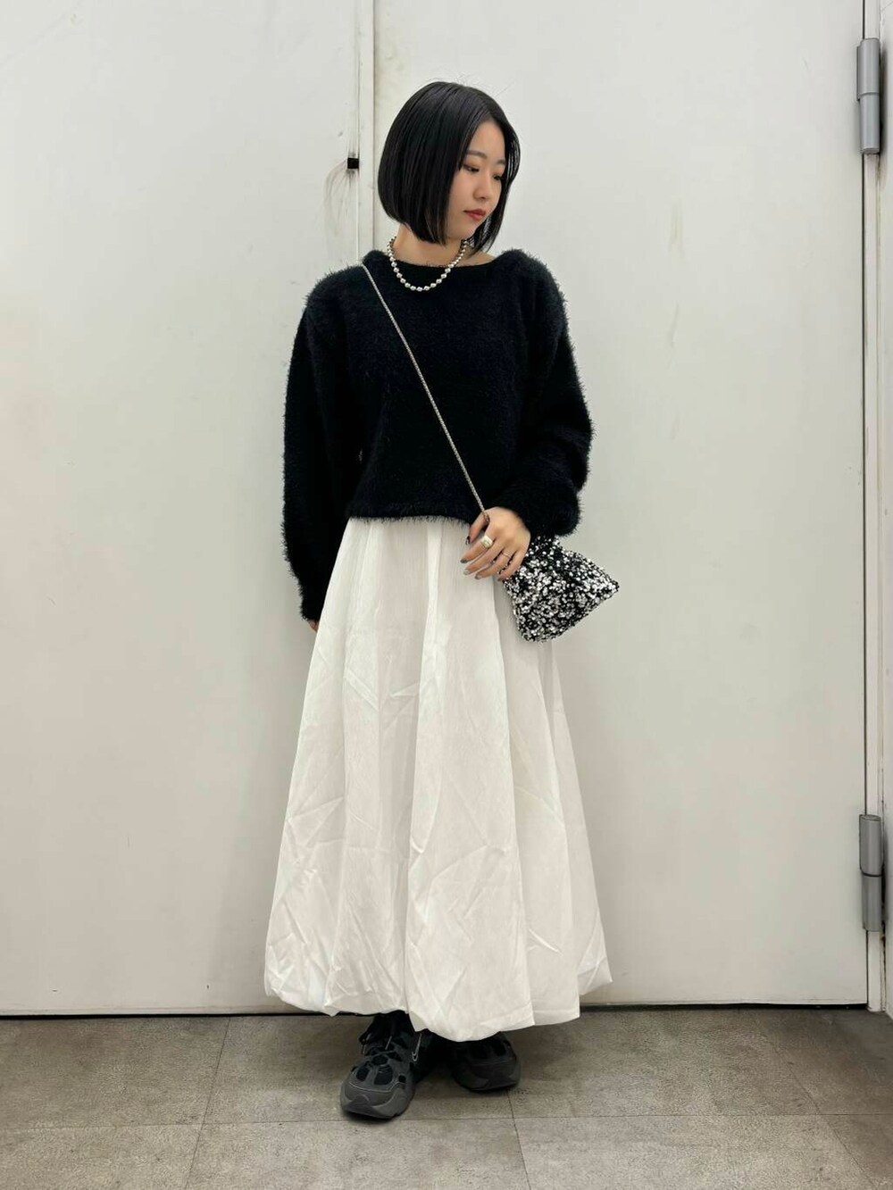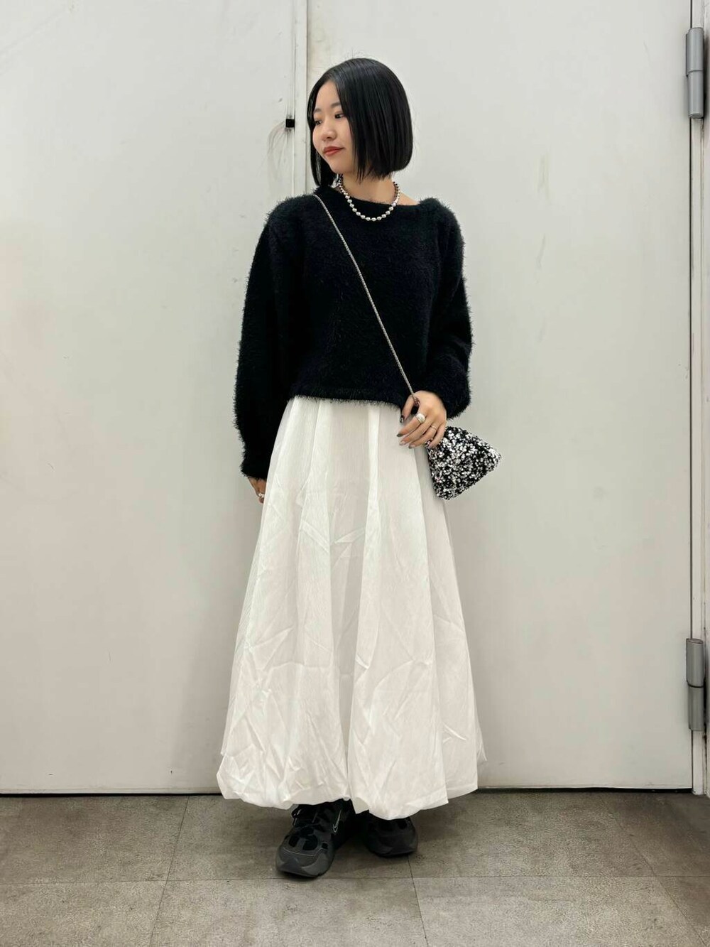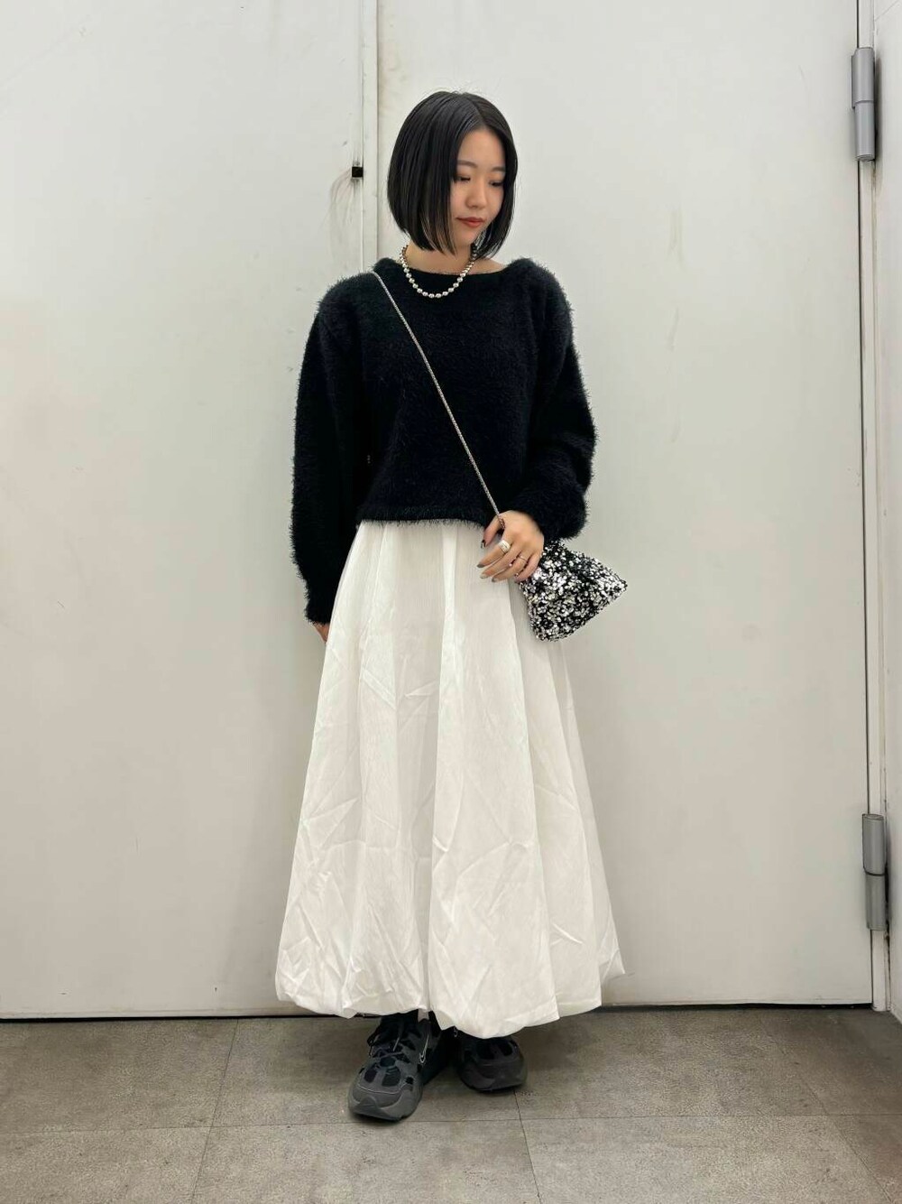 足元はスニーカーでカジュアルさをプラス。