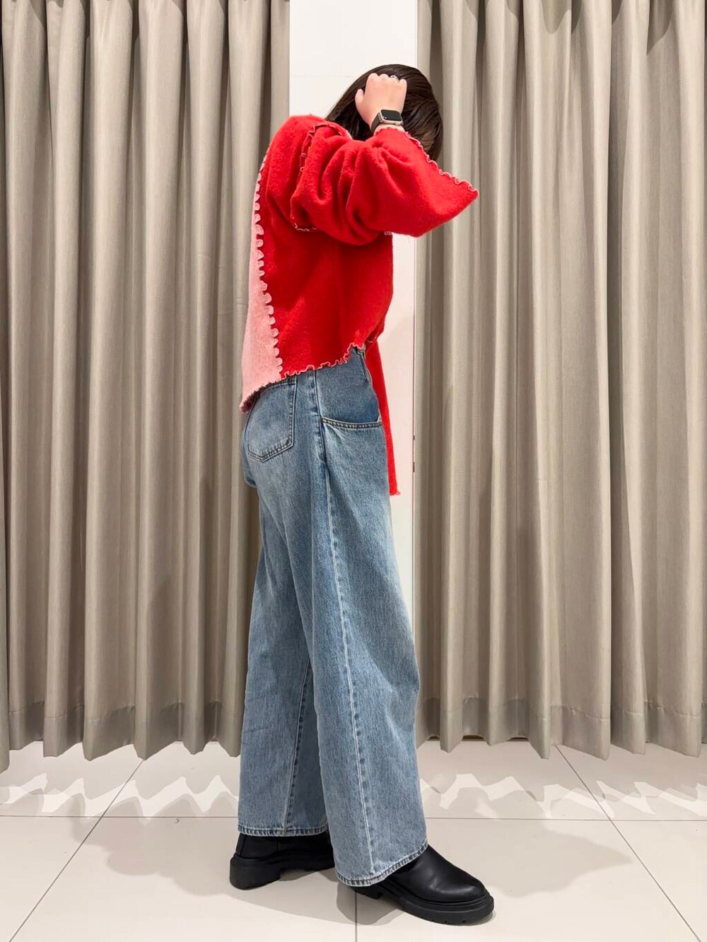 カラー配色がどひきり可愛いKBFのニットは、定番デニムと合わせて、この時期に着たくなる赤コーデです⸜ ෆ ⸝