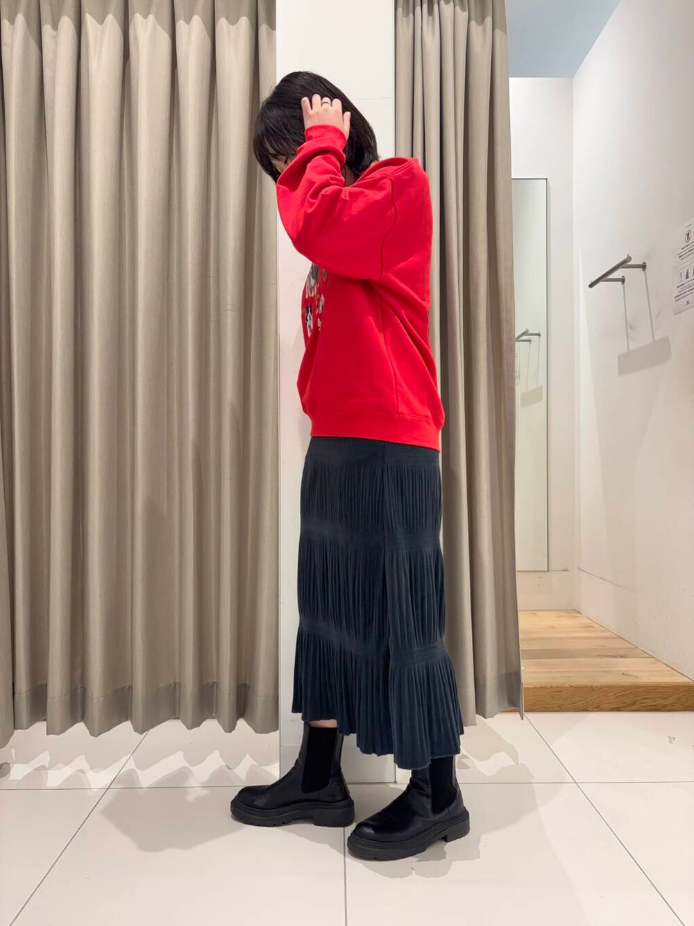ユニセックスで着られるこちらのグラフィックスウェットは、ワンピースの上からゆったり着ても◎
