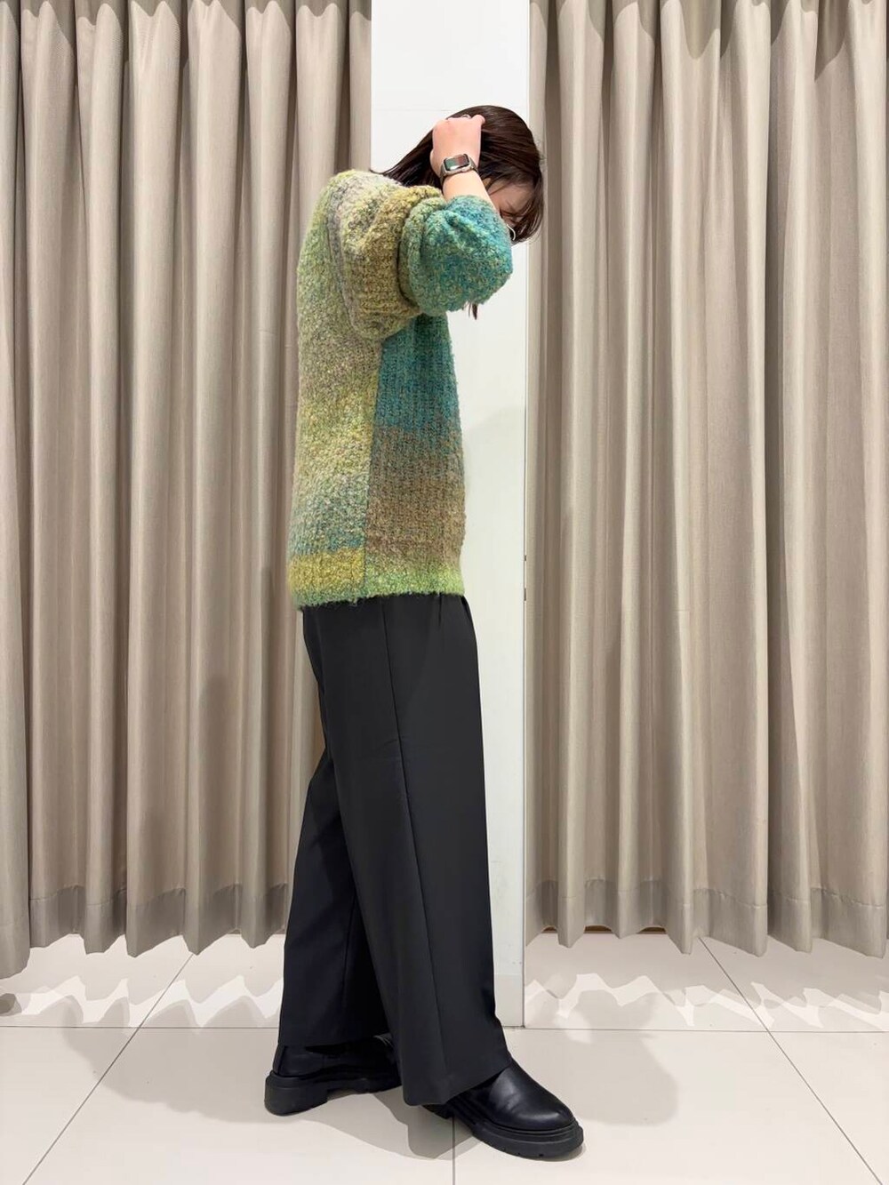 着用のグラデーションニットは、1枚1枚グラデーション具合が異なるので、ぜひ店舗でチェックしてみてくださいね⸜ ෆ ⸝