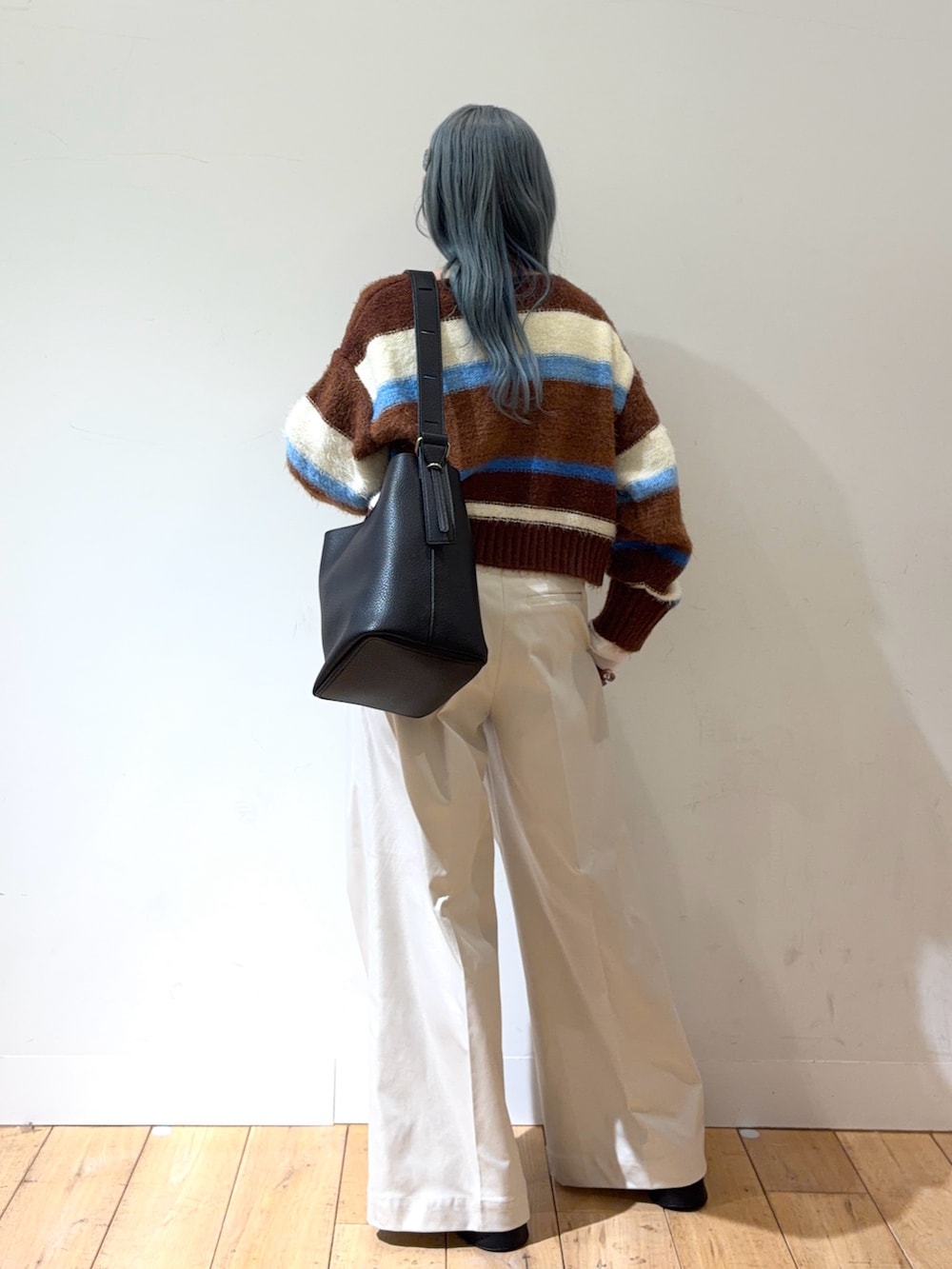 SENSE OF PLACE『洗濯可』シャギーハイショクボーダーニット- 着用カラー: