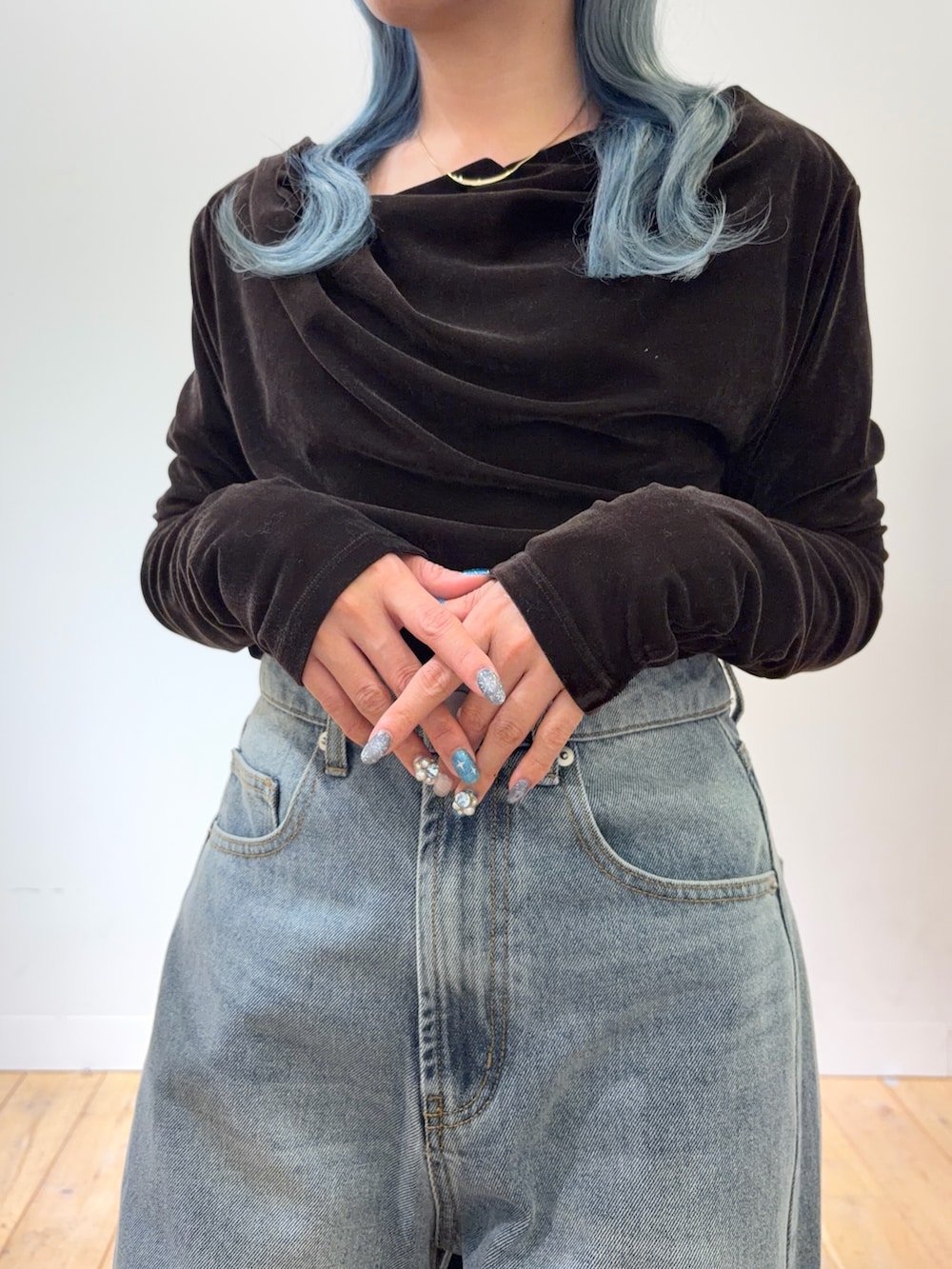 センスオブプレイス新作のベロアドレープトップを使ったコーデです♡