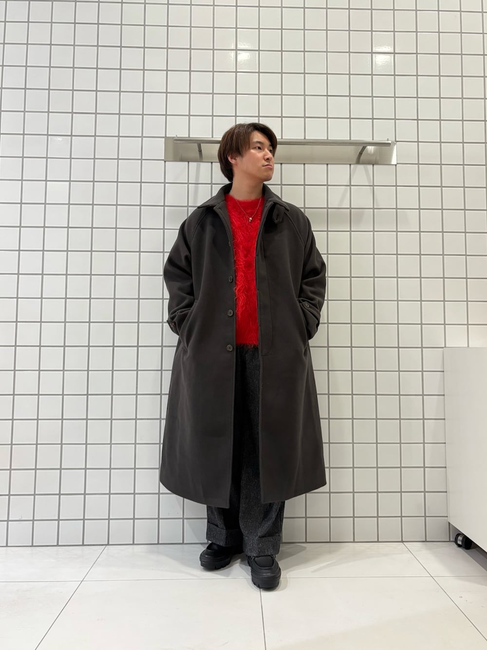 落ち着いた色味のブラウンブーツで季節感も加わり、オンオフ使える万能コーデです🍂
