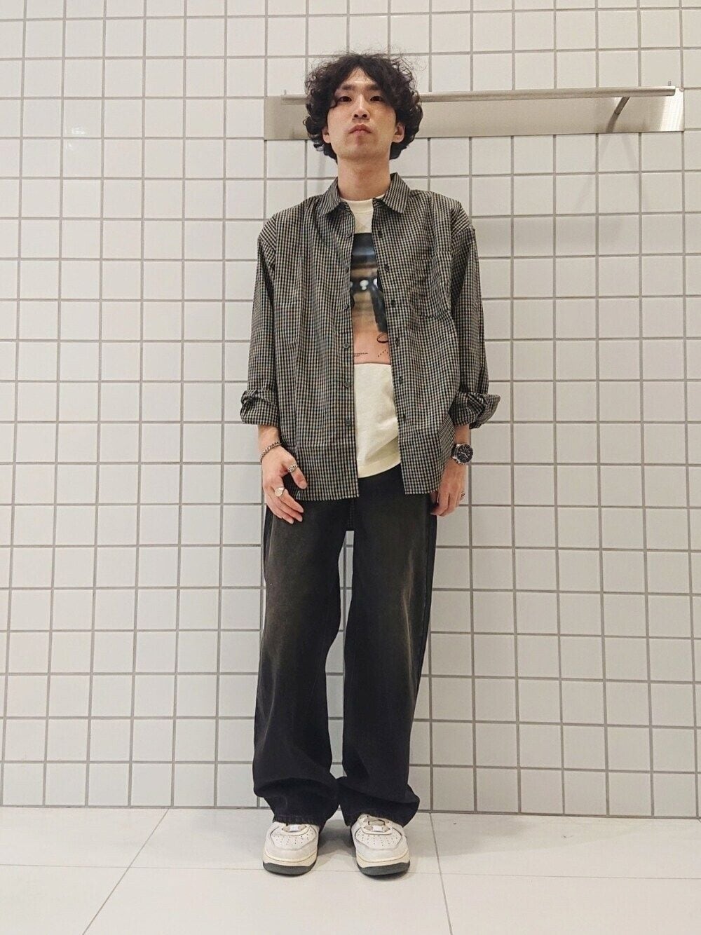 秋らしいチェックシャツを使ったスタイリングで古着好きの方にももってこいです○
