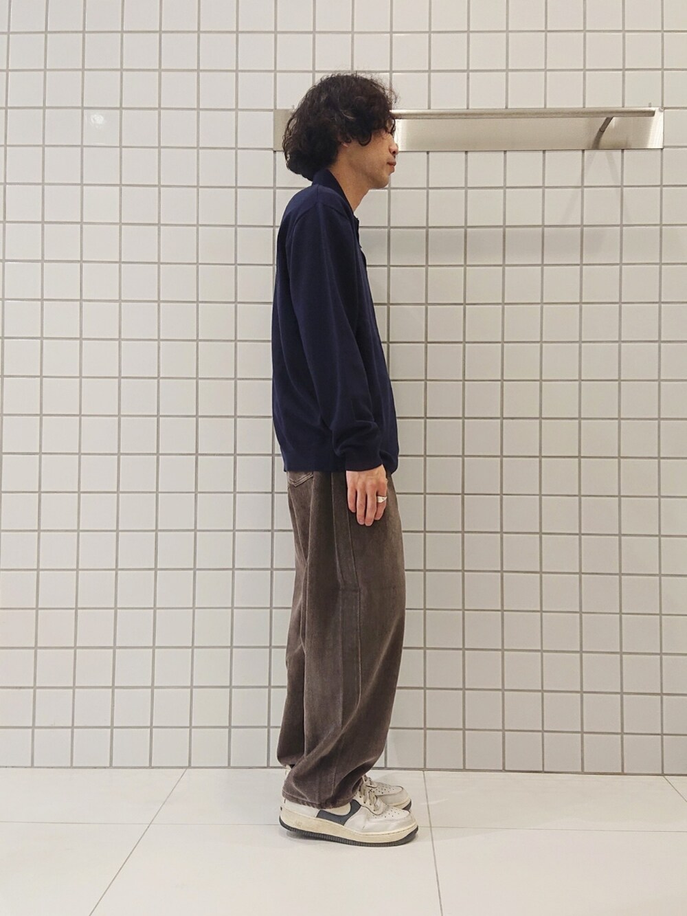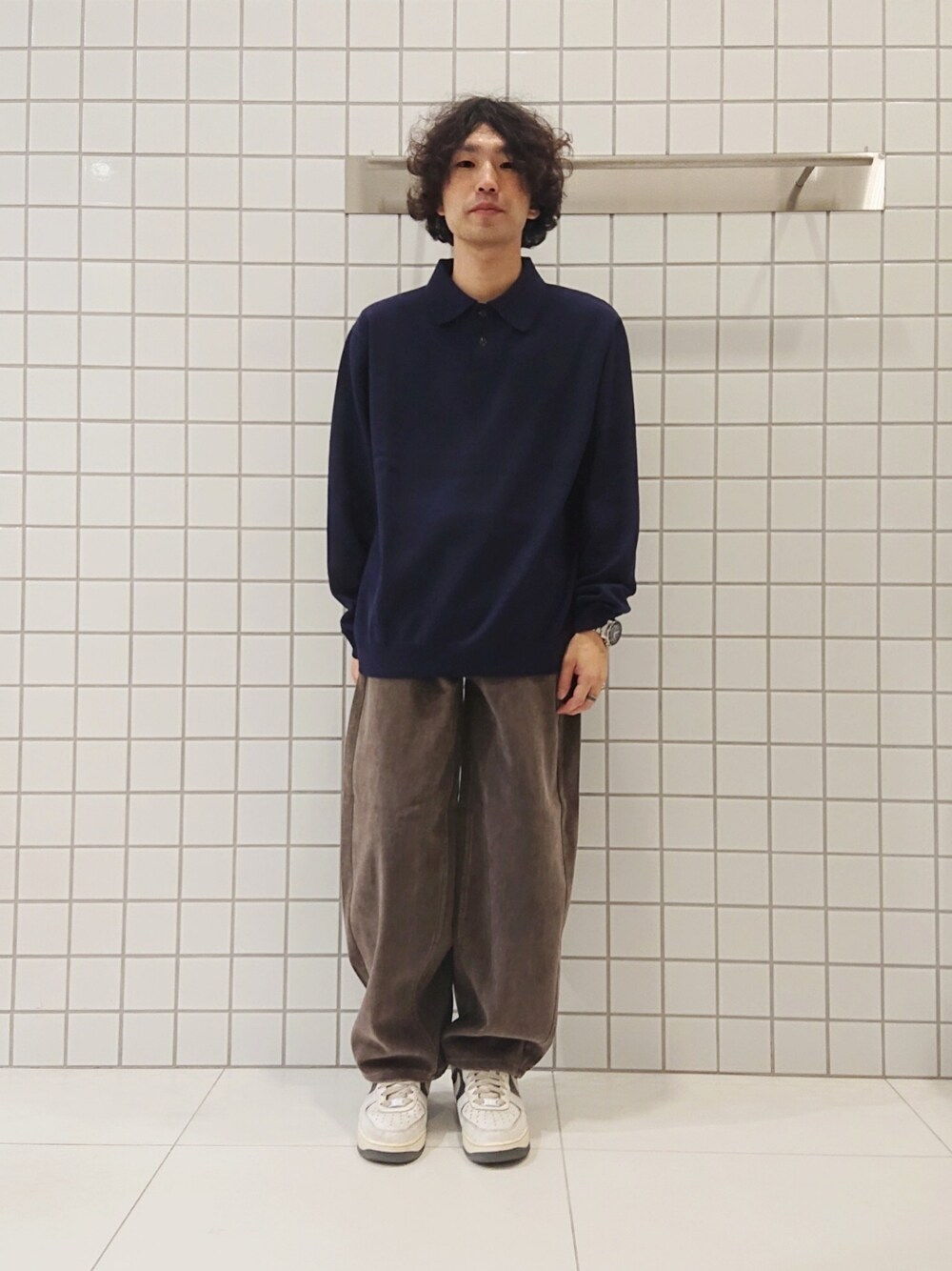 ポロシャツはパンツのボリュームに合わせてオーバーサイズですが、サイズ感調整してスラックスなどでのきれいめ合わせもできます〇