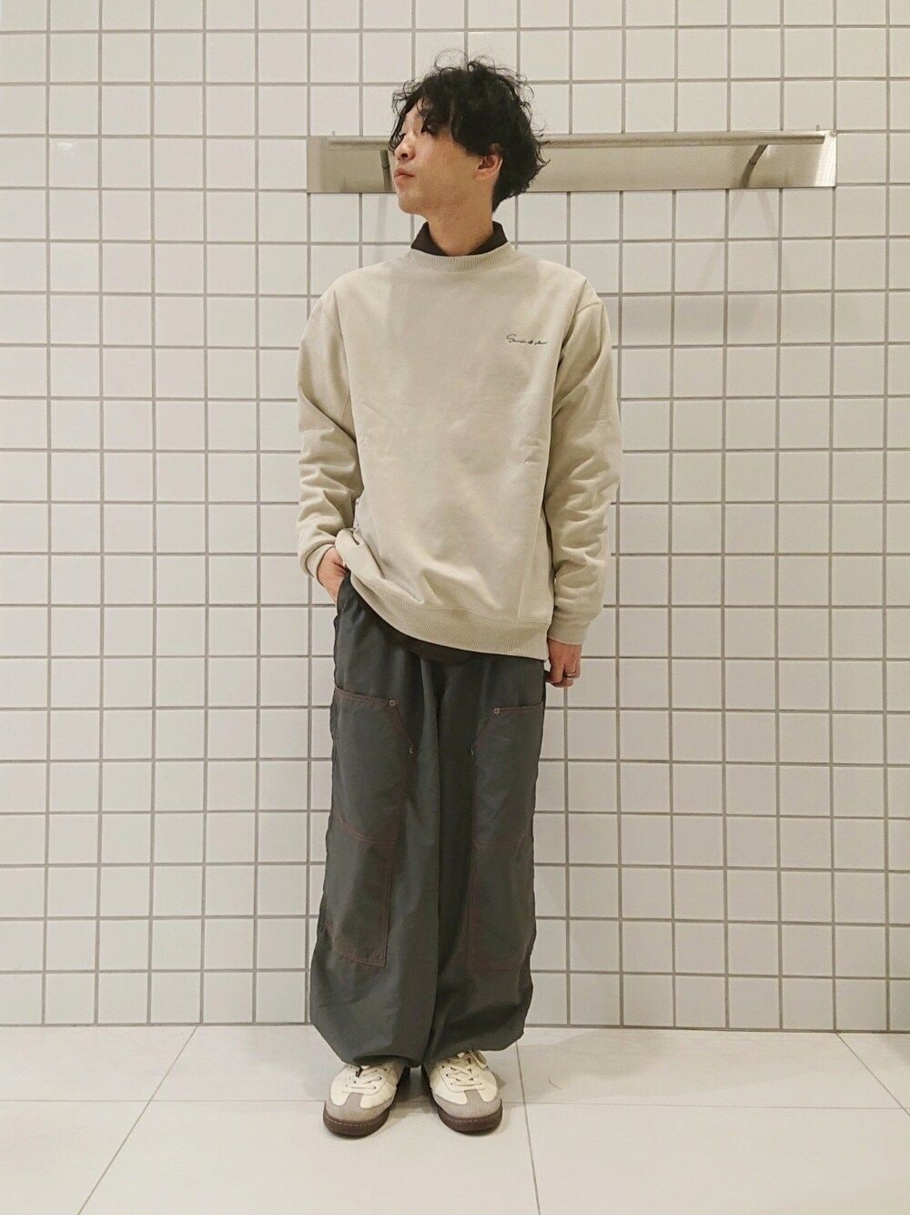 シンプルスウェットはインナーとレイヤードにすると印象が変わります○