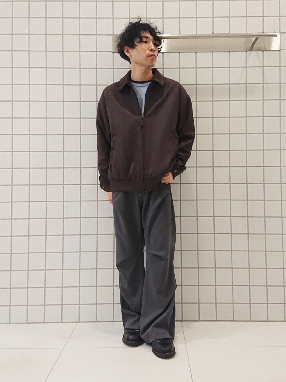 ブルゾンはスエードタッチで肌触りよく、光沢感も程よくあるのできれいめスラックスにもばっちり合います○