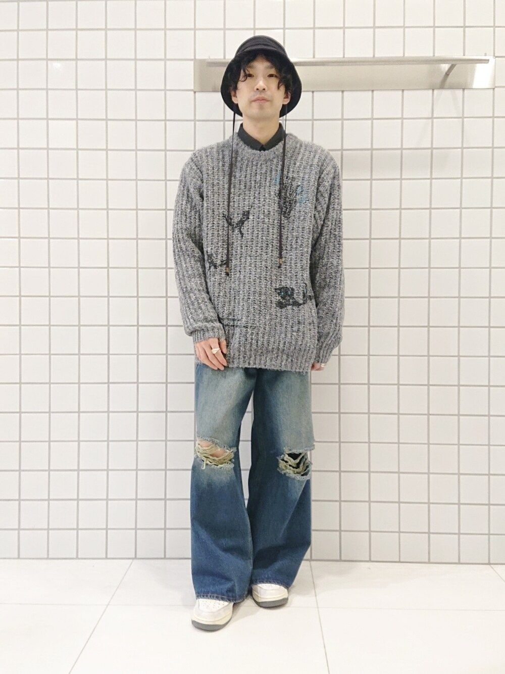 セーターはポイントのグラフィックで1枚着はもちろん、インナーでも使いやすいです〇