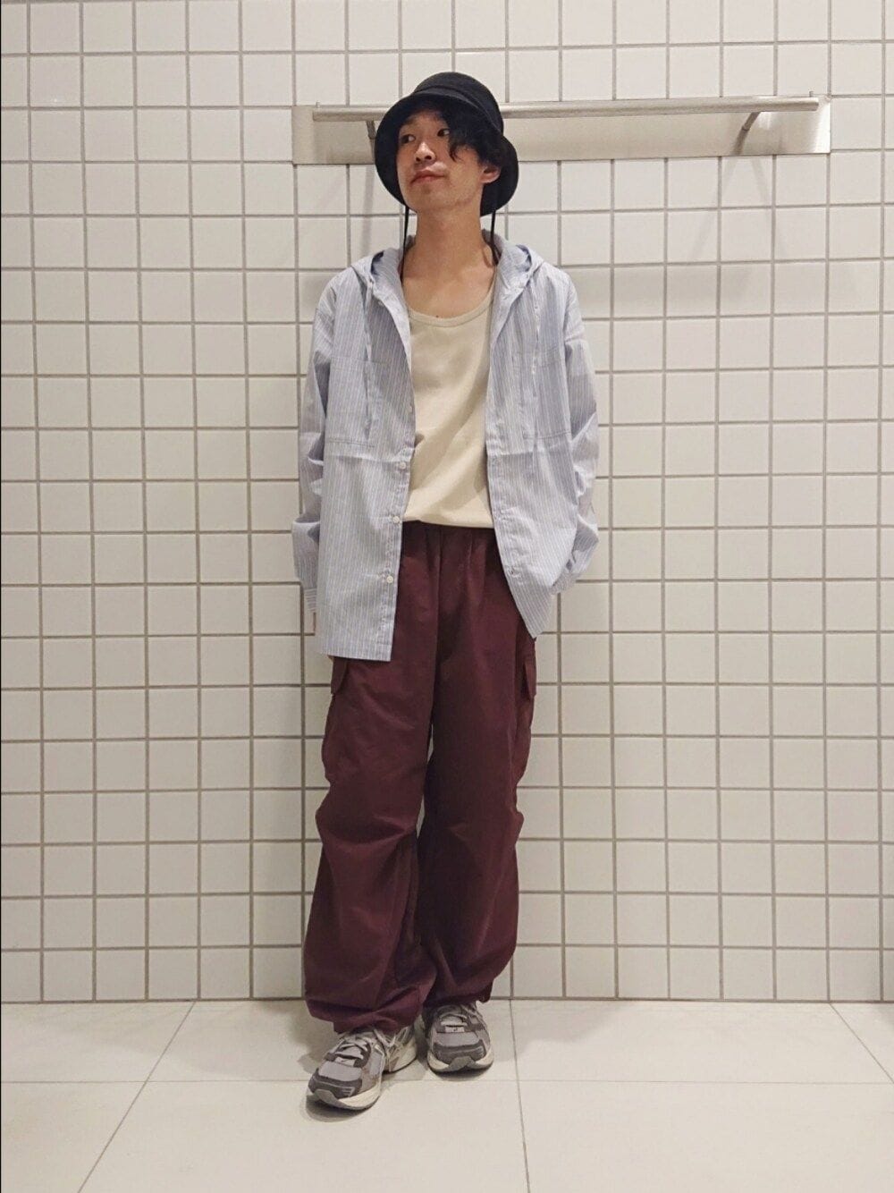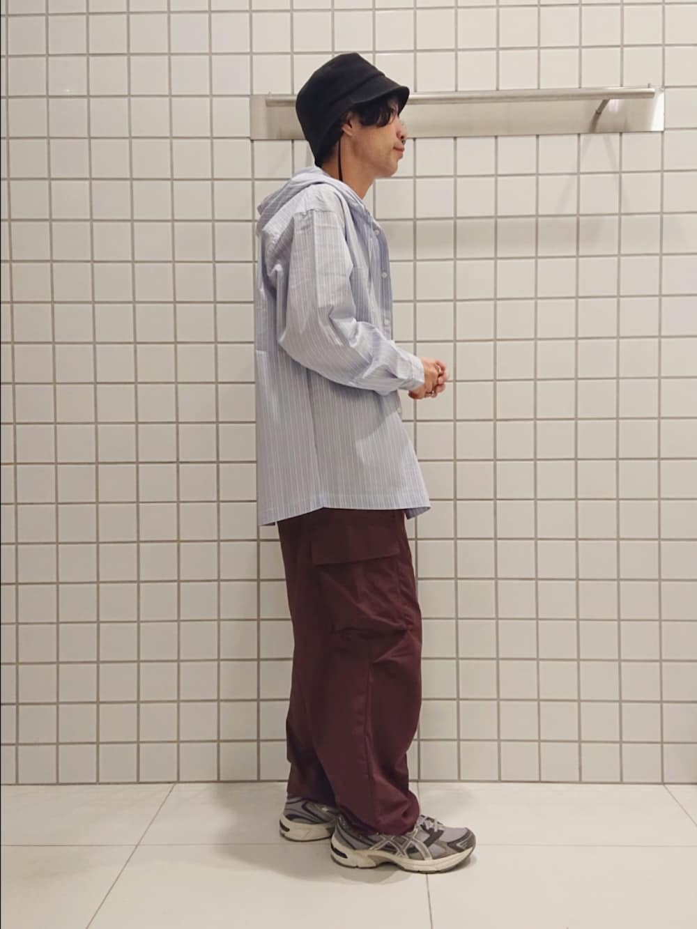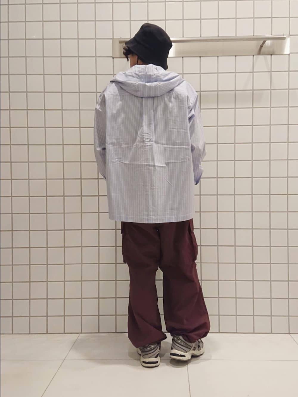 トップスは珍しいフーディの形で、1枚着でもレイヤードでパーカーよりきれいに使用したりもでき見せ方の幅を広げてくれます○