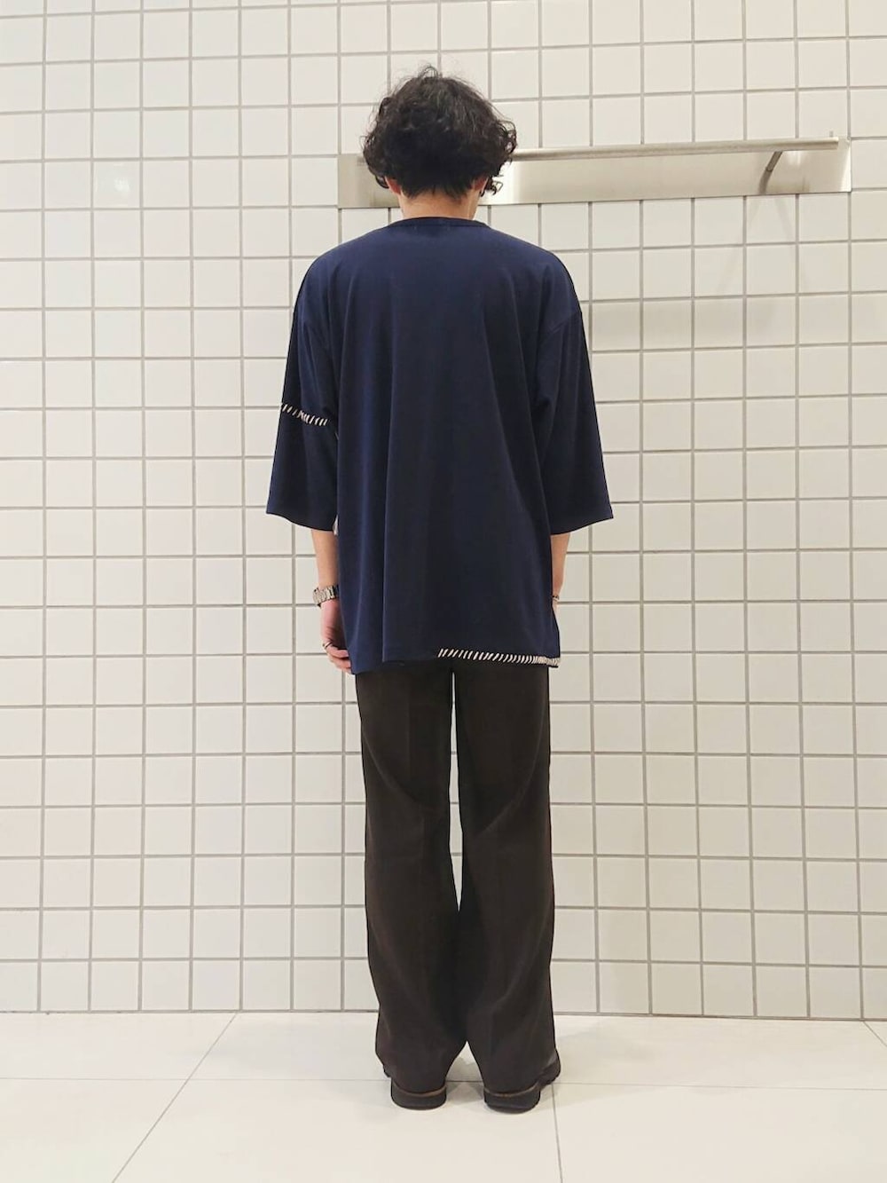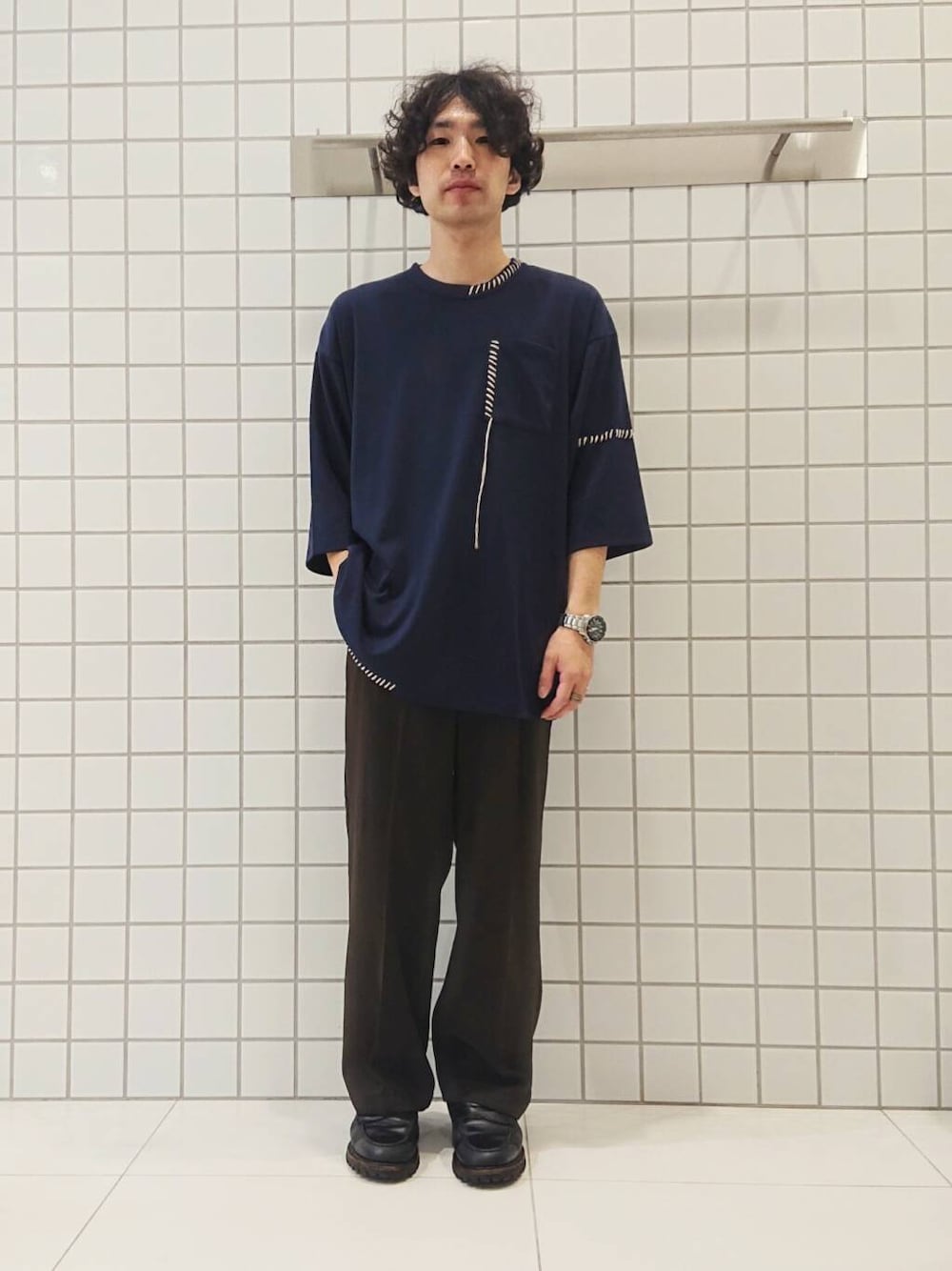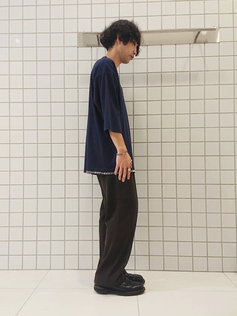 Tシャツのルーズなサイズ感で晩夏にはぴったりで、デザインもあるのでシンプルながら可愛いです〇