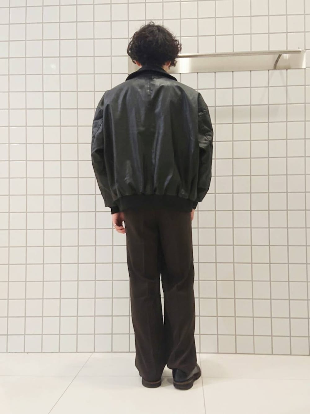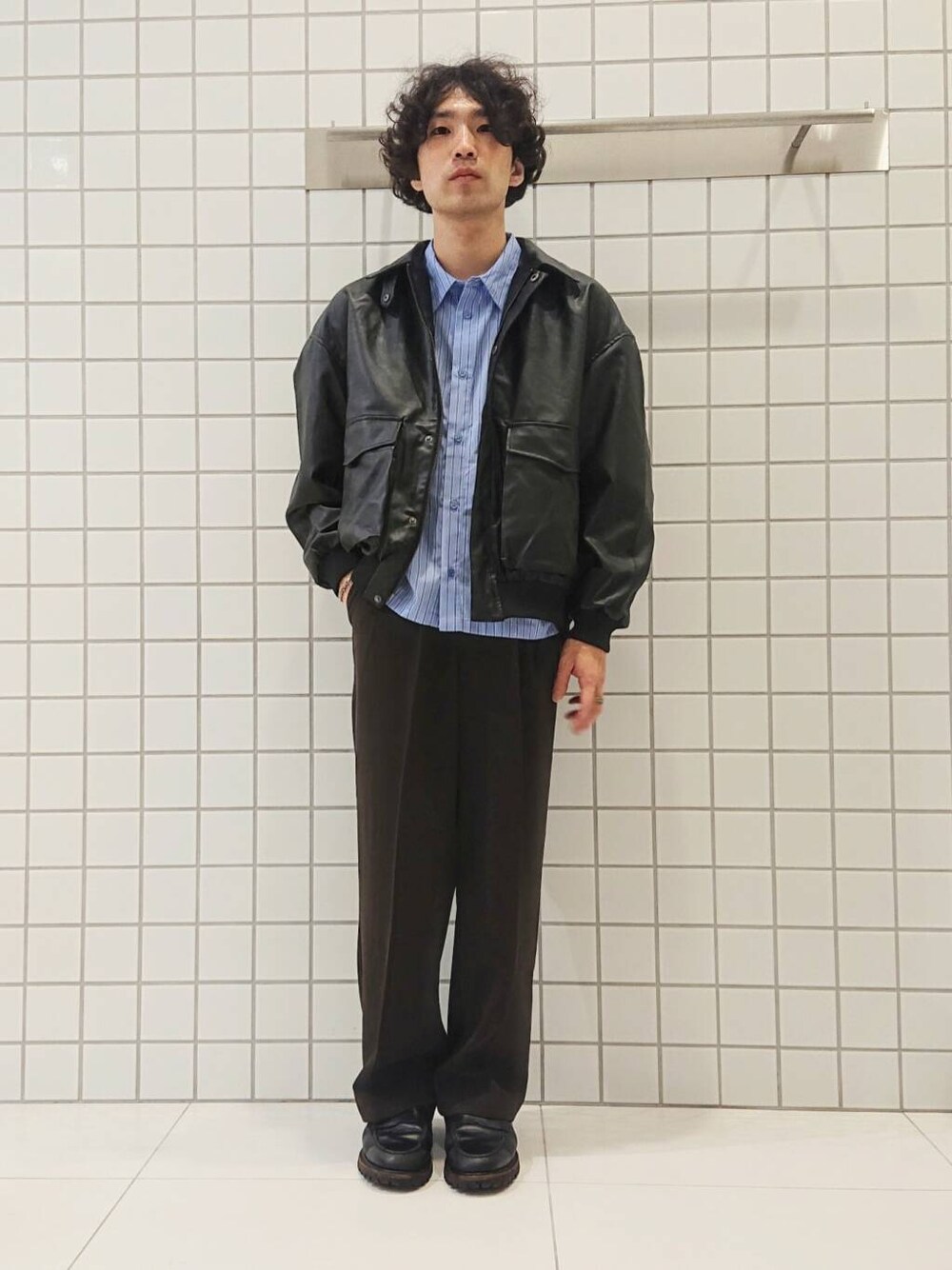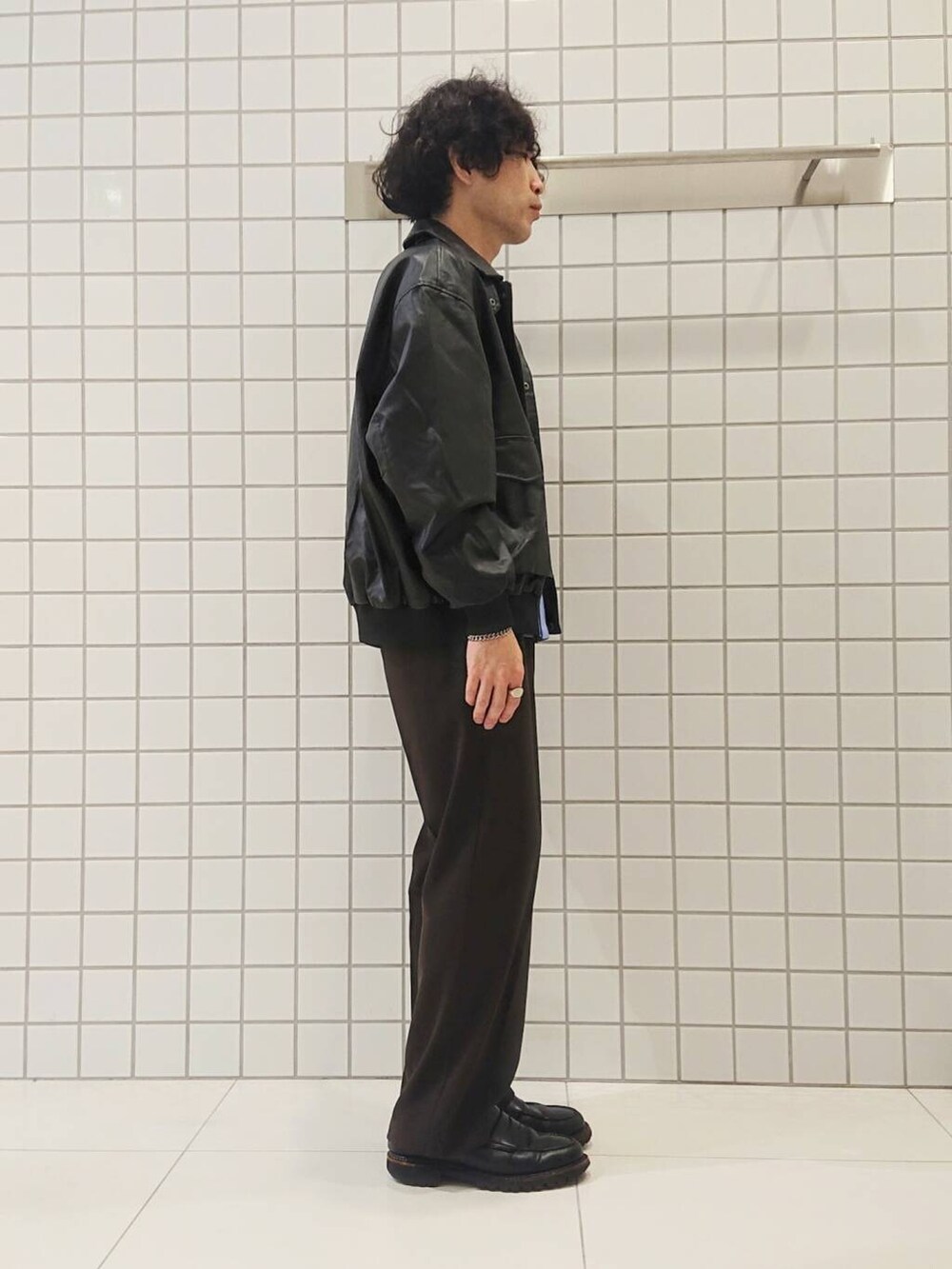 スラックスだときれいめに、デニム合わせでもカッコ良く着れ、ブルゾンの丈感に合わせてスタイルも良く見えます〇
