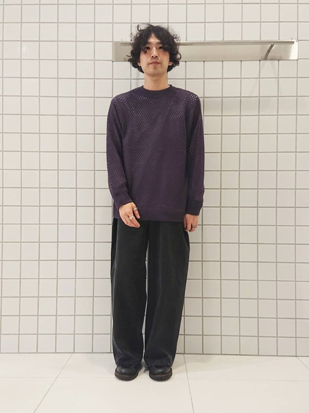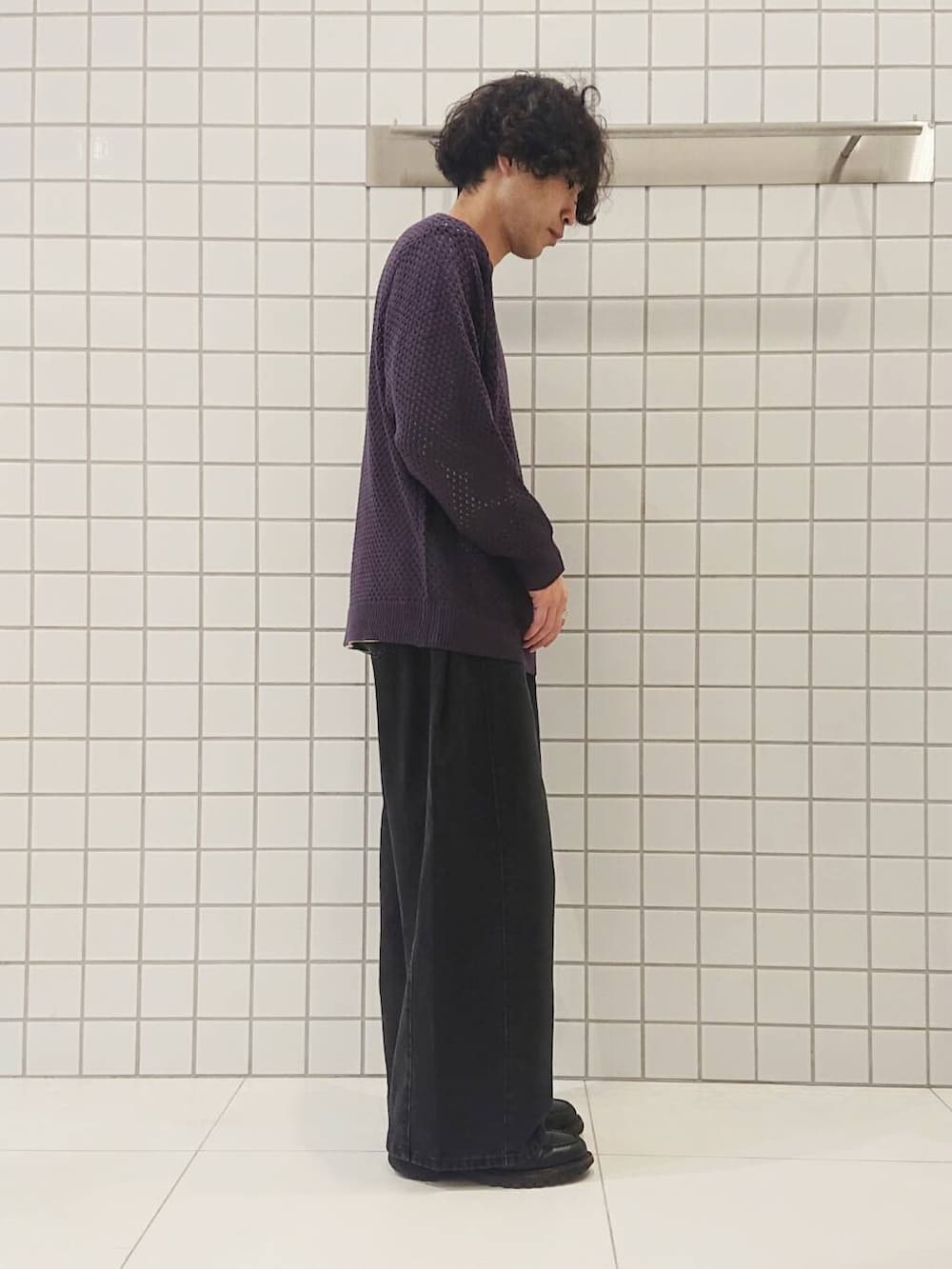 セーターはメッシュ素材なので、季節の変わり目にもぴったりでトップス、ボトムス共にユニセックスで使っていただけます〇