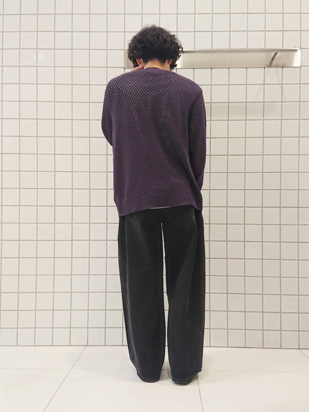 メッシュセーター×ワイドデニム。
