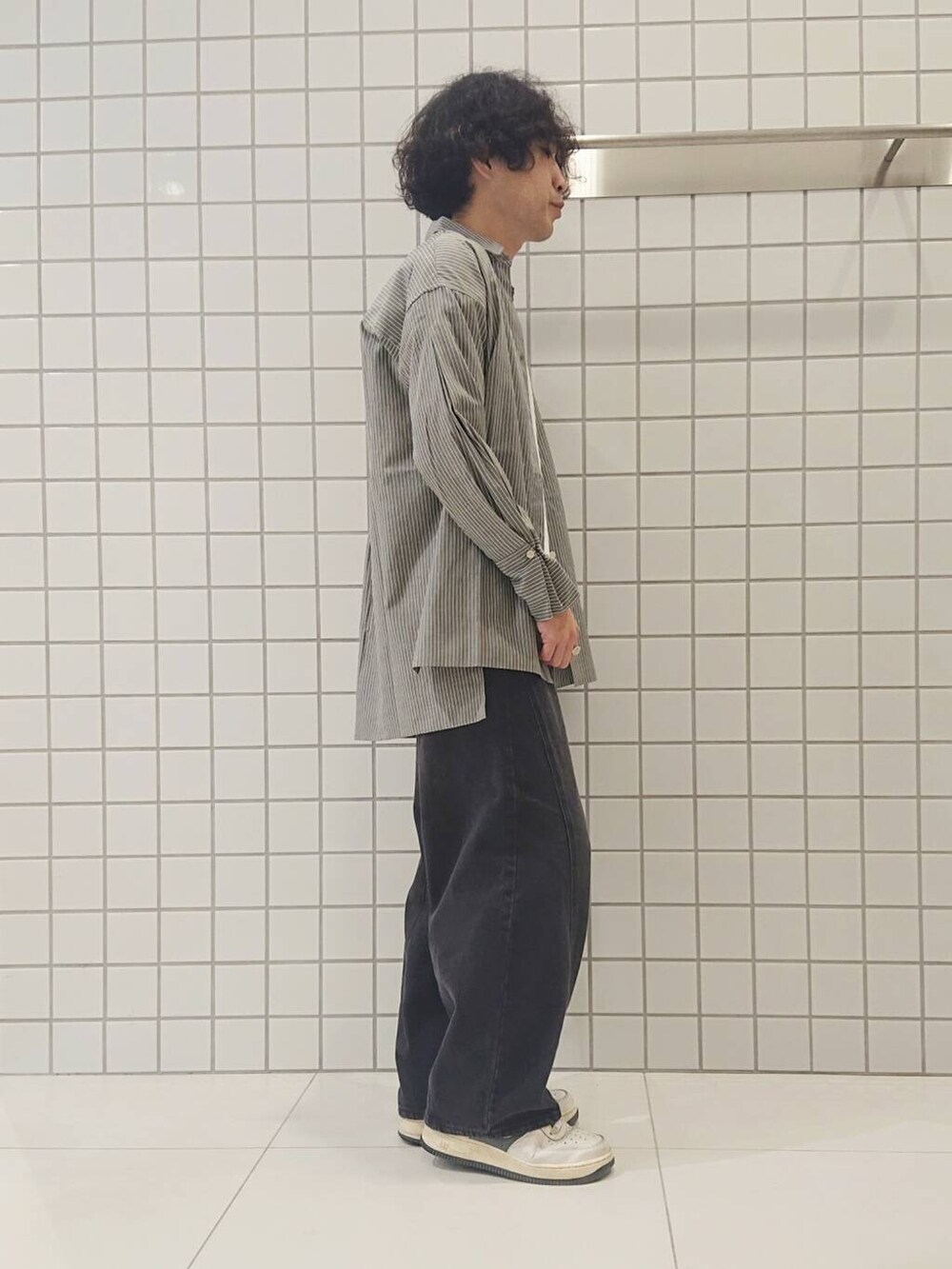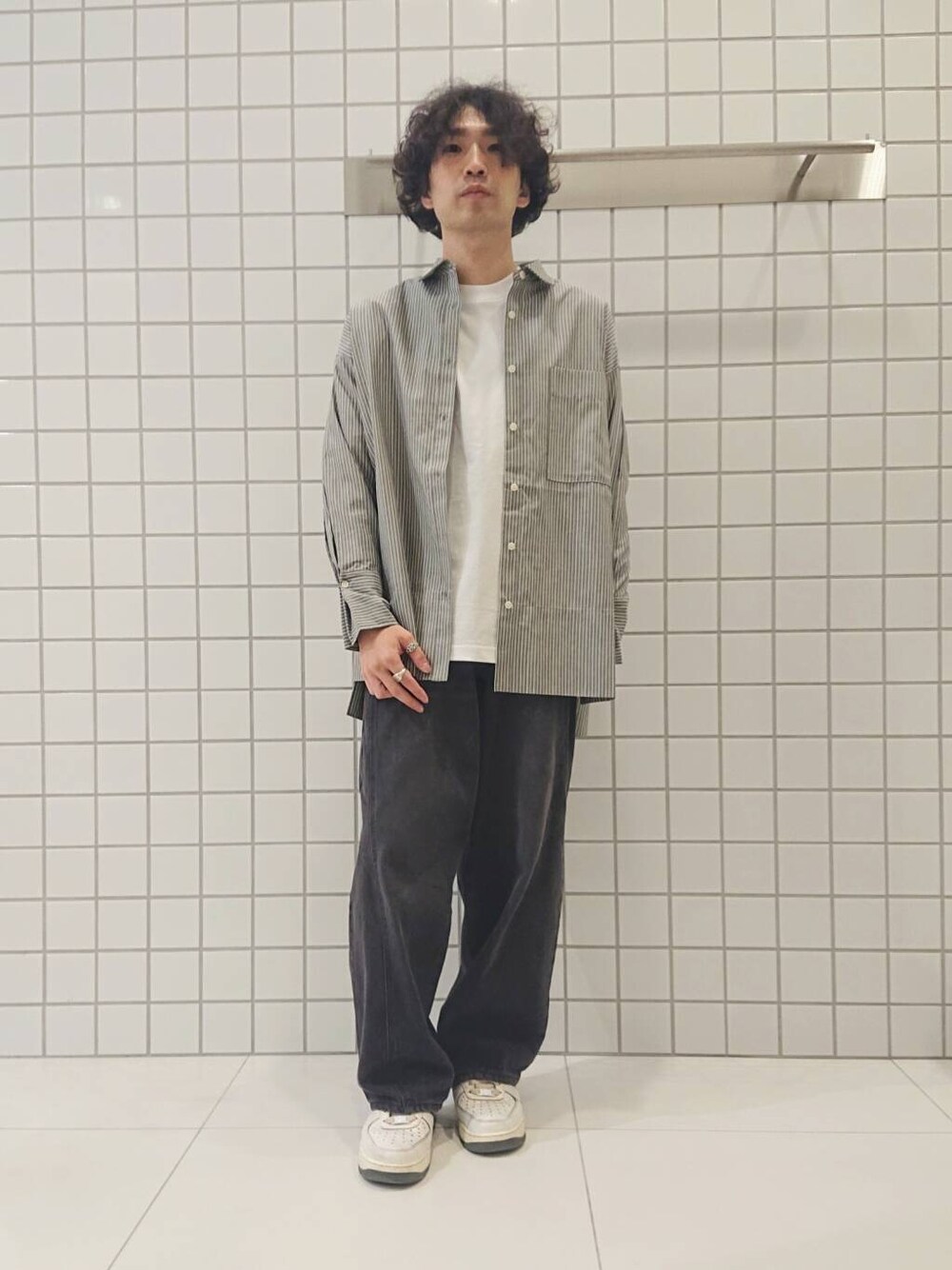 ルーズシャツ×ワイドデニム。