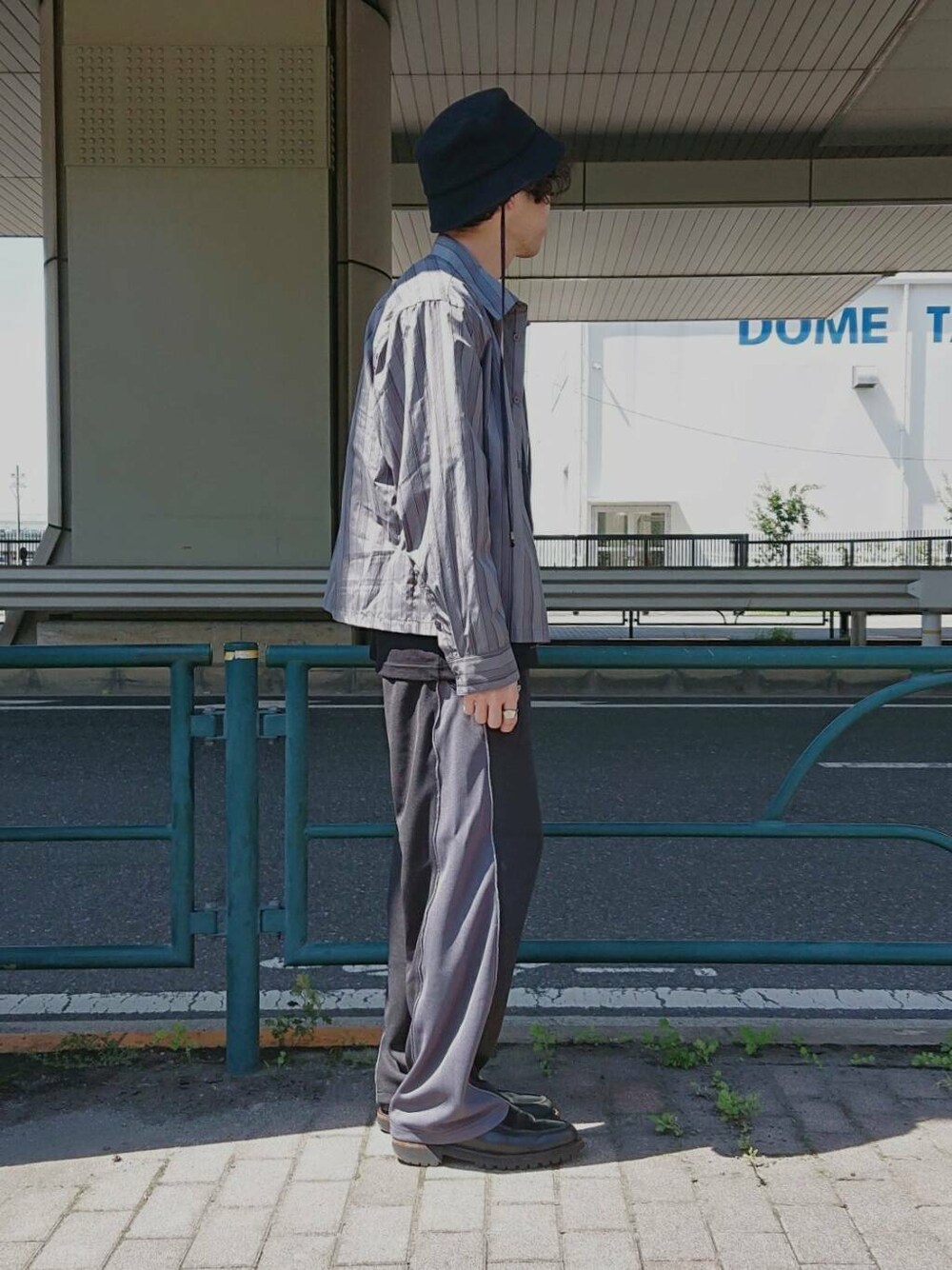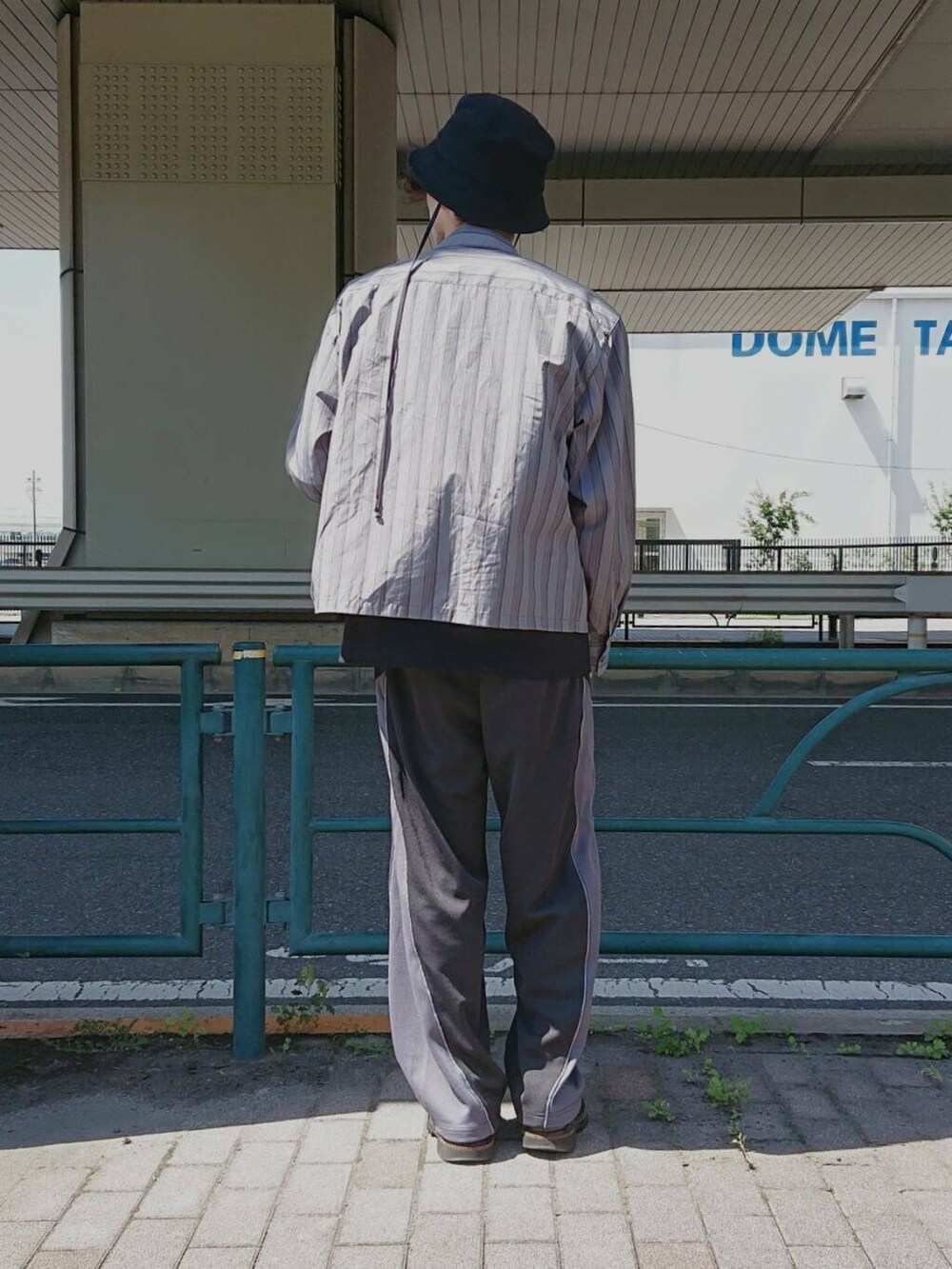 ショートスリーブシャツ×トラックパンツ。
