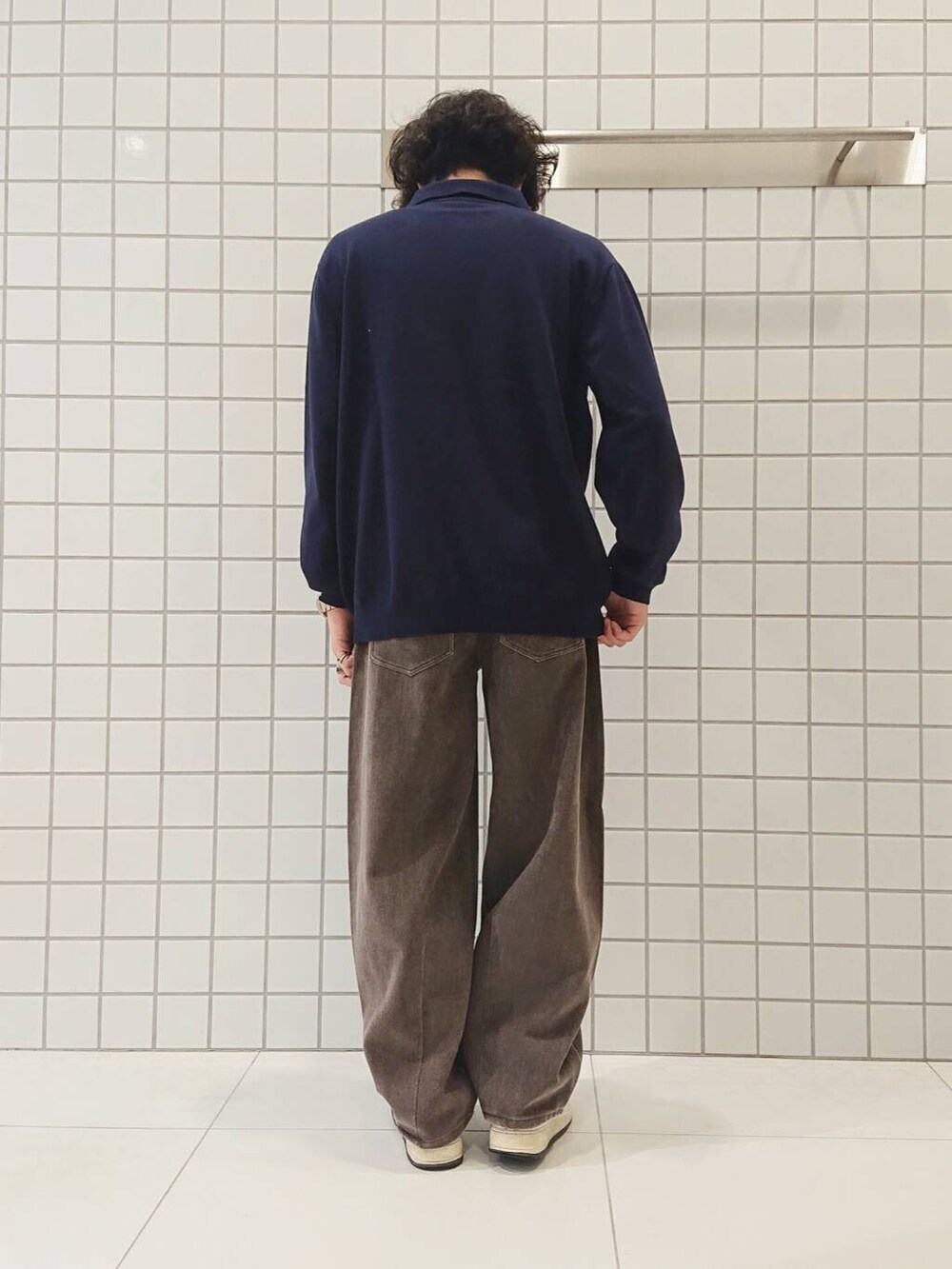 ポロシャツはパンツのボリュームに合わせてオーバーサイズですが、サイズ感調整してスラックスなどでのきれいめ合わせもできます〇