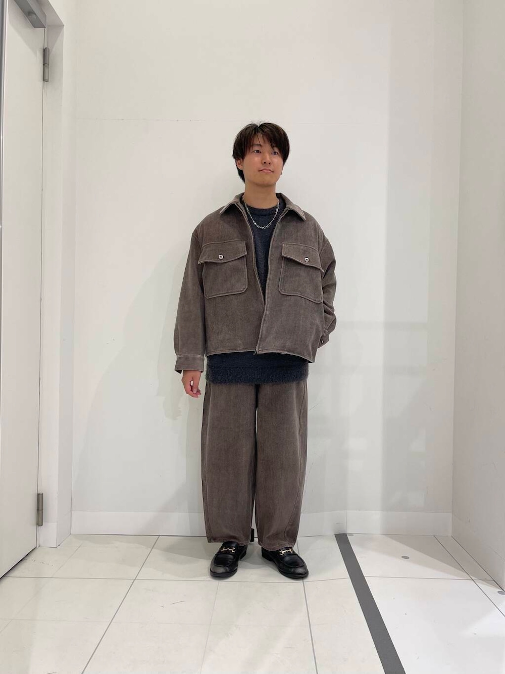 トレンドのカーブシルエットとヴィンテージ加工のセットアップコーデです!