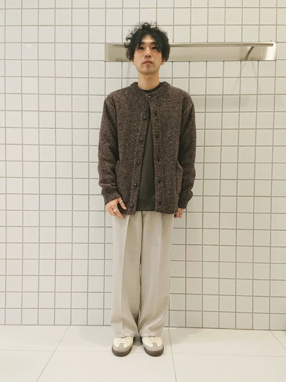カーディガンはルーズサイズなので、スウェットと合わせるとアウター代わりになり便利です○