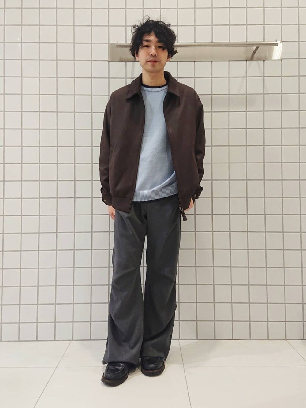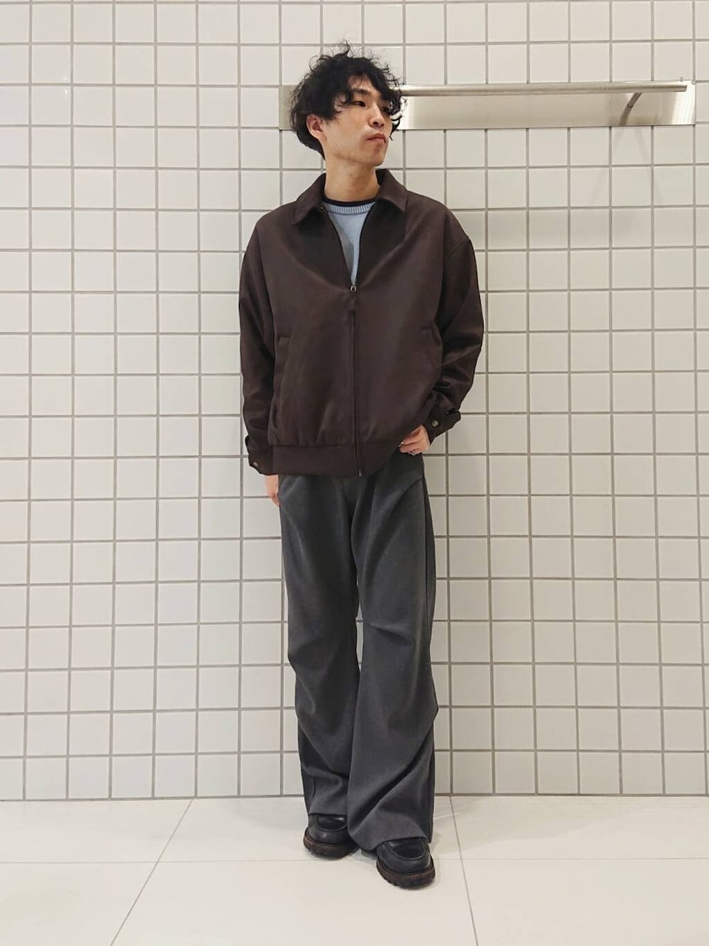 ブルゾンはスエードタッチで肌触りよく、光沢感も程よくあるのできれいめスラックスにもばっちり合います○