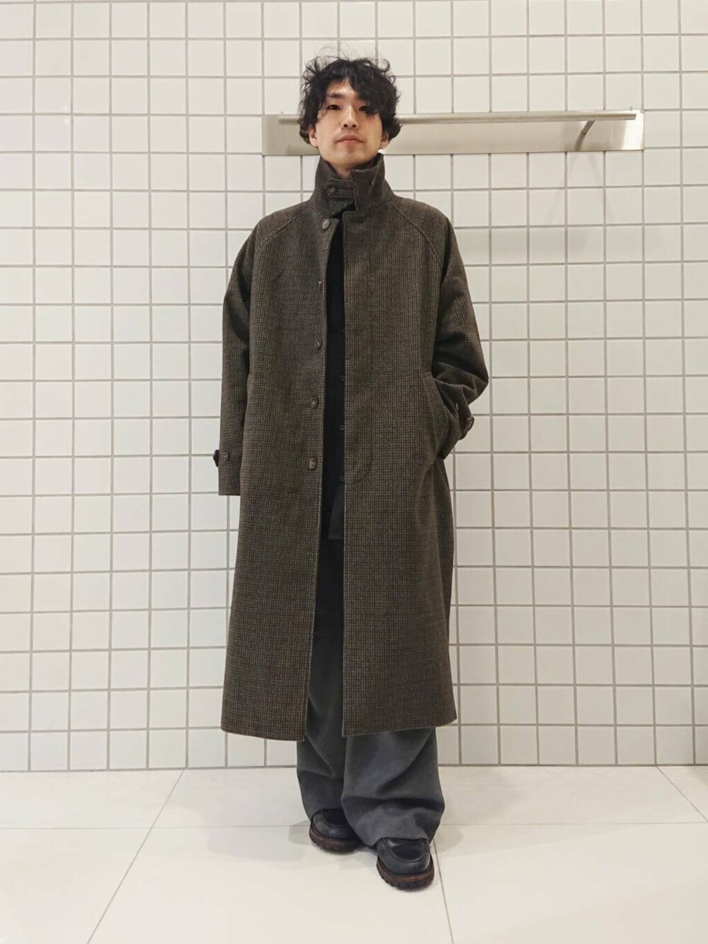 冬のきれいめコーデにはマストのルーズロングコートで、スタンドカラーとの2WAY仕様なのでスタイリングの幅が広がります○