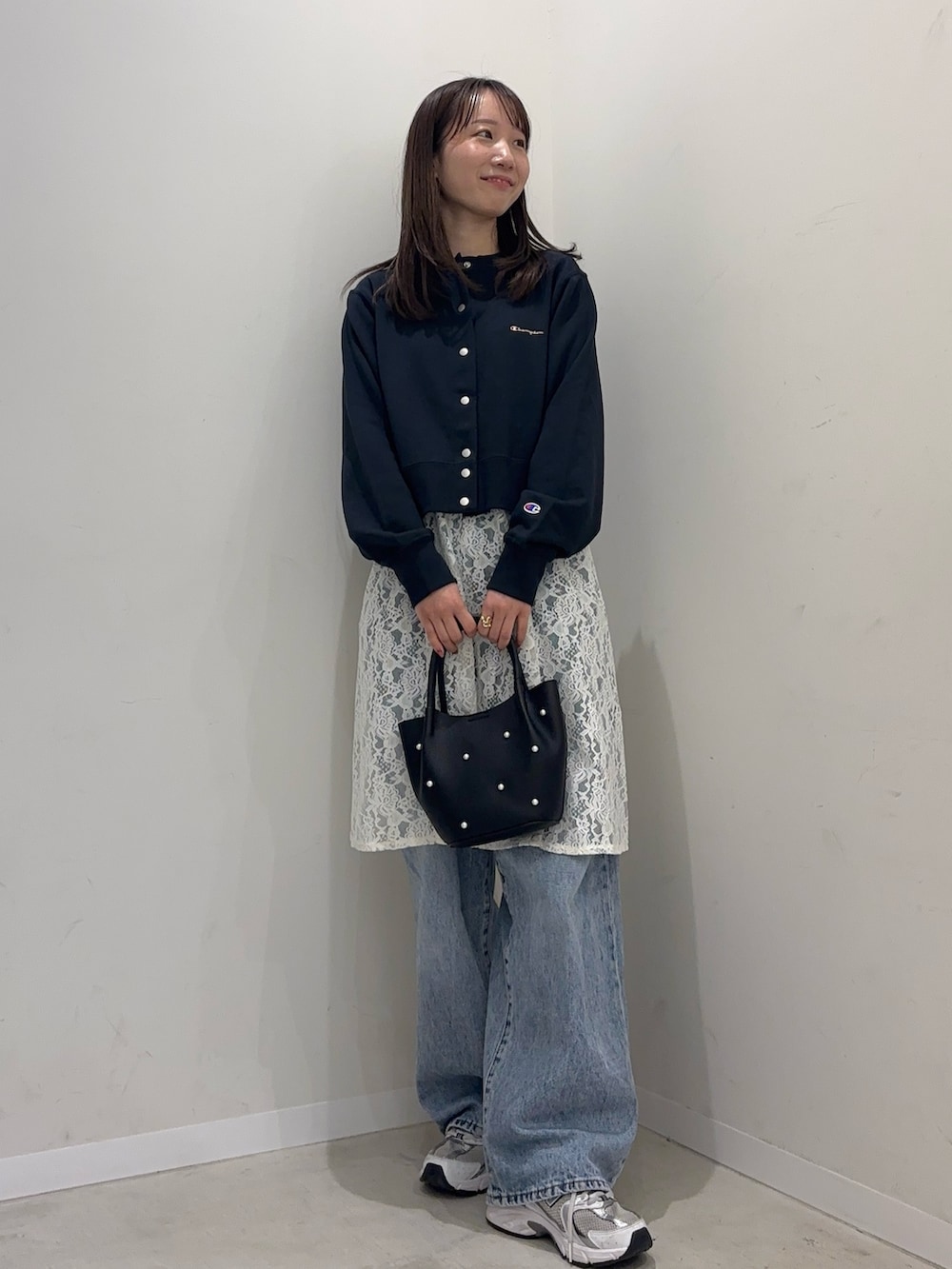 レースワンピをレイヤードさせて、