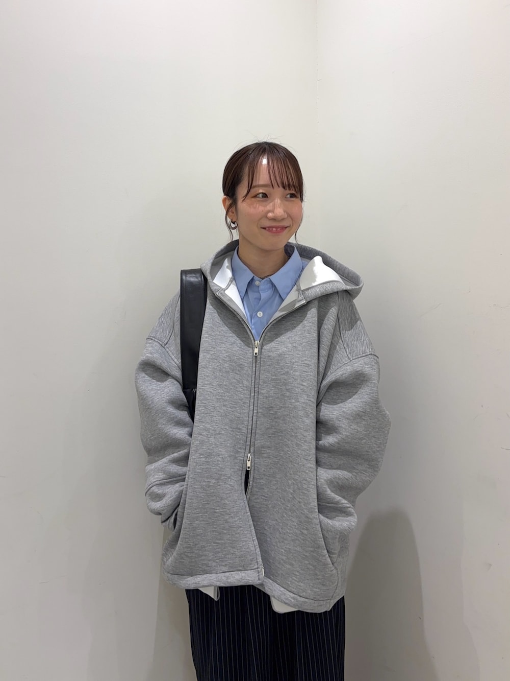 コクーンシルエットのZIPパーカーを