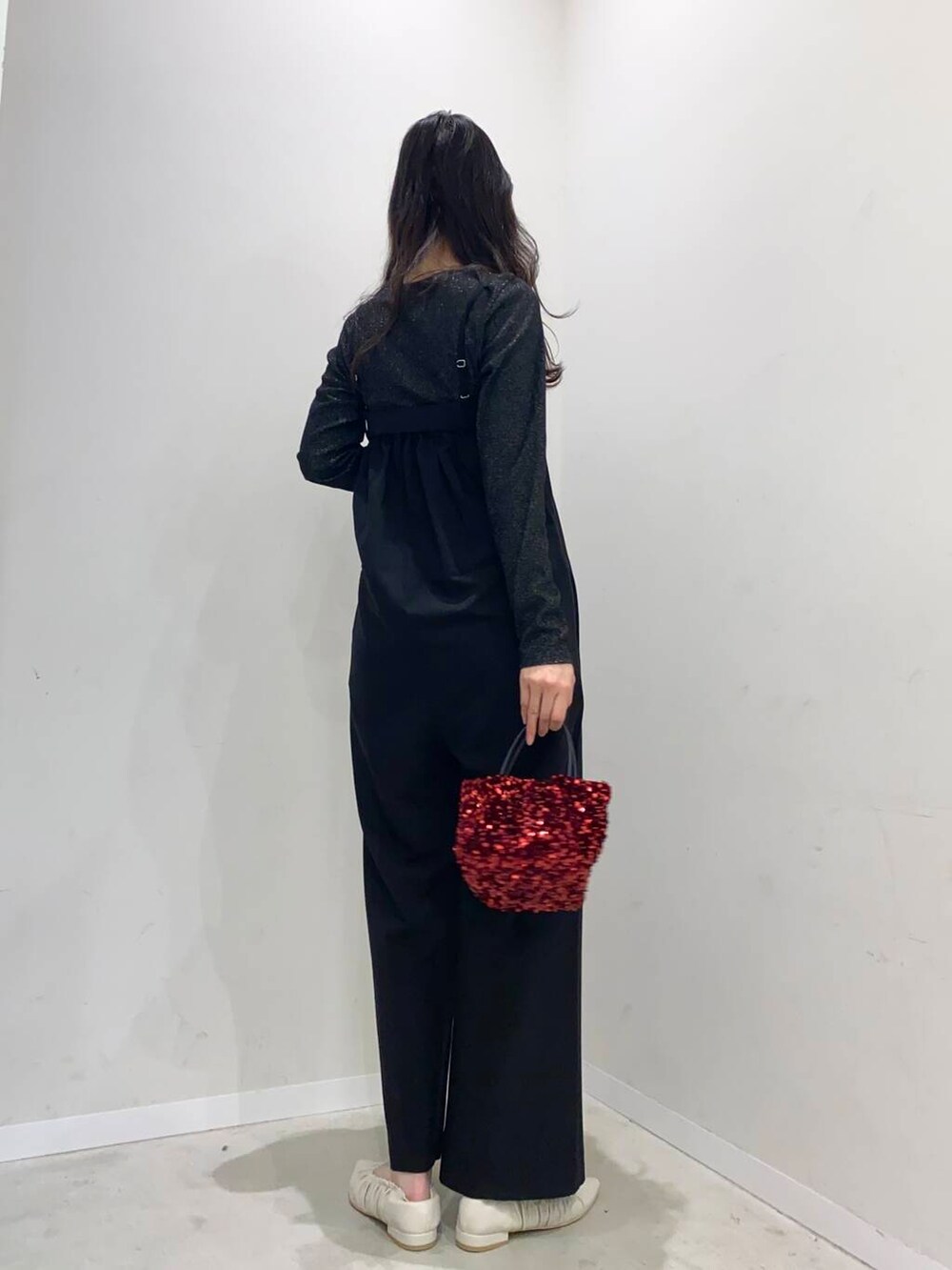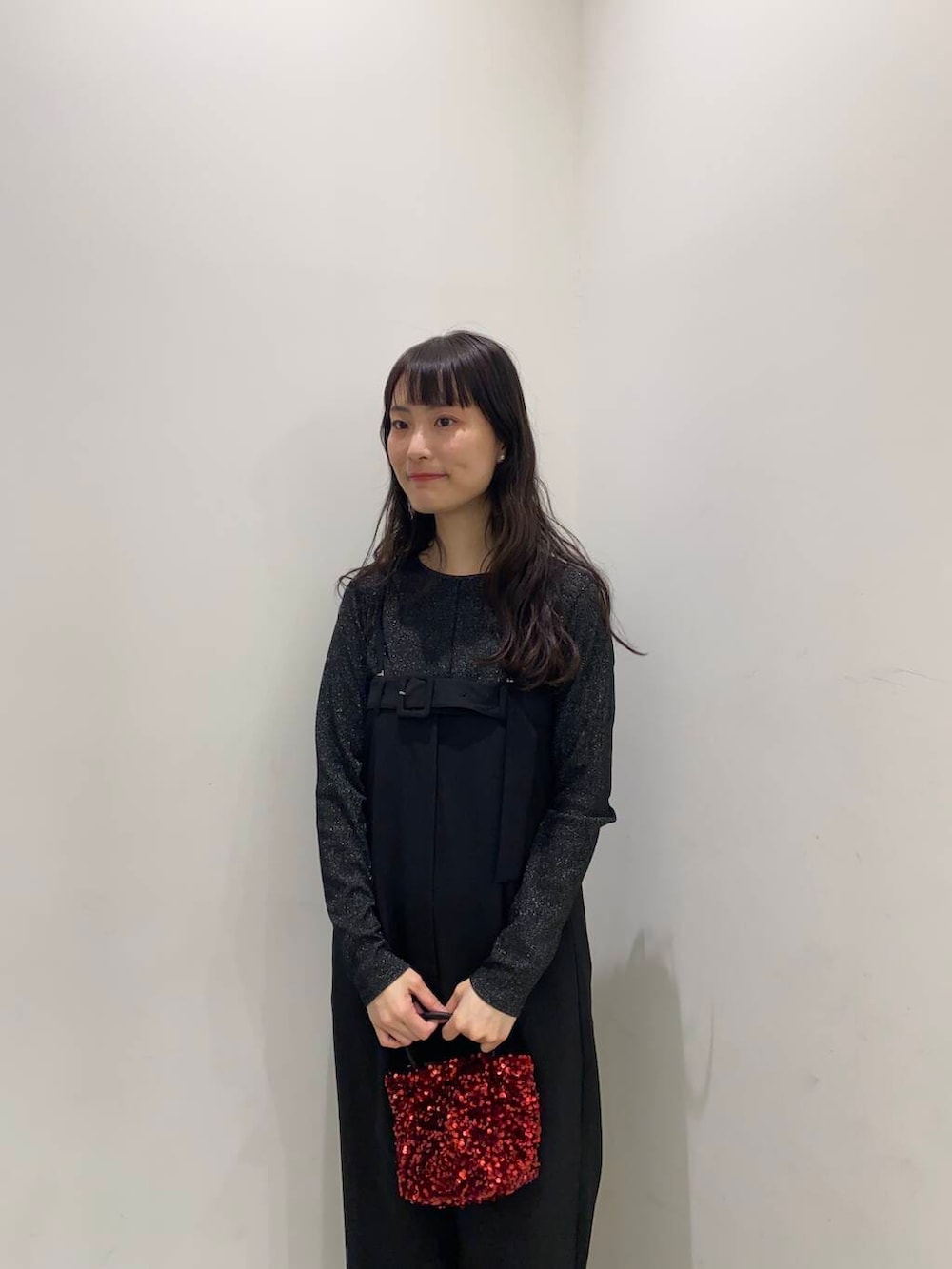 ブラックコーデの中に差し色で赤のスパンコールです🍓