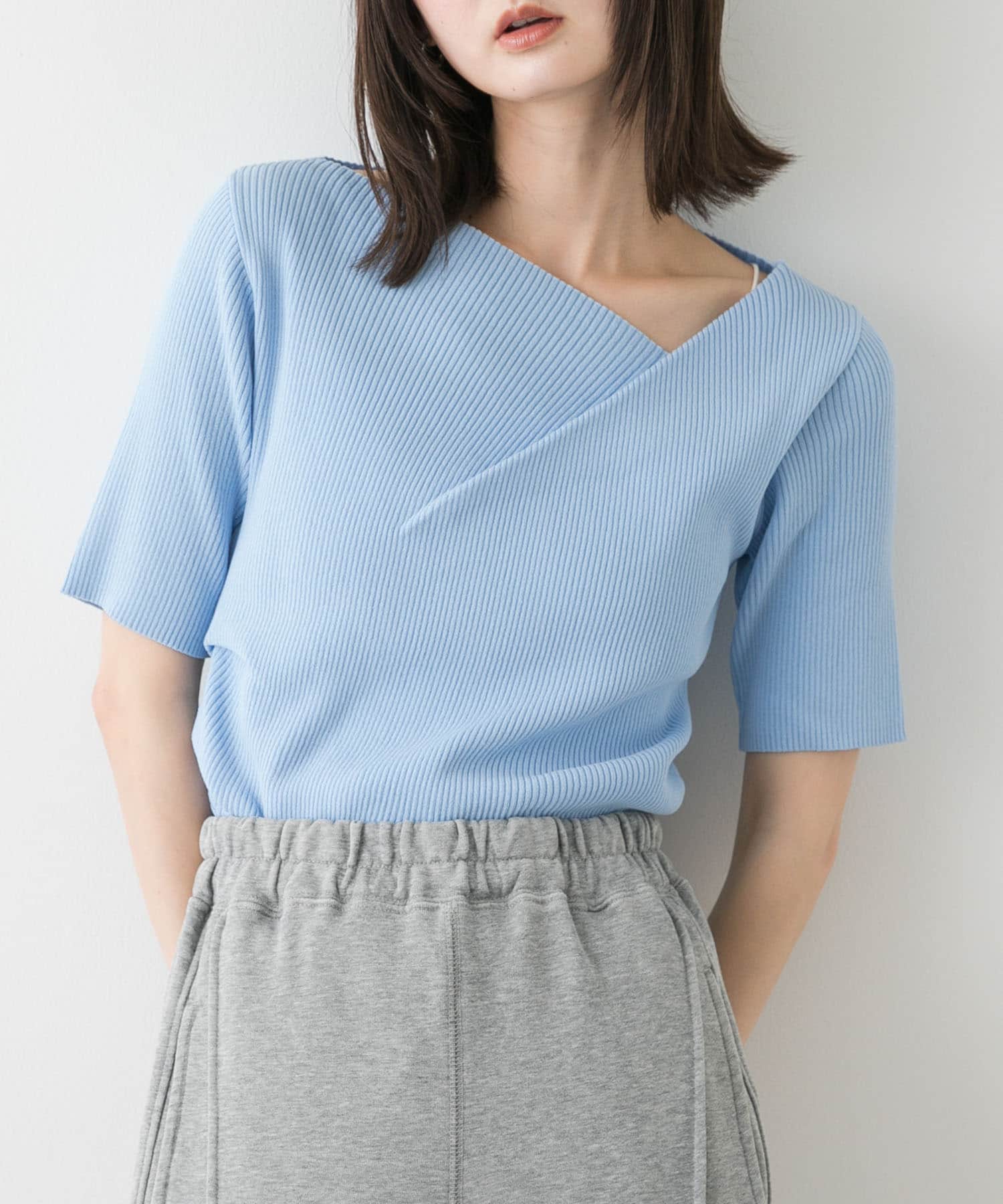 『一部WEB限定カラー』アシメネックハーフスリーブセーター