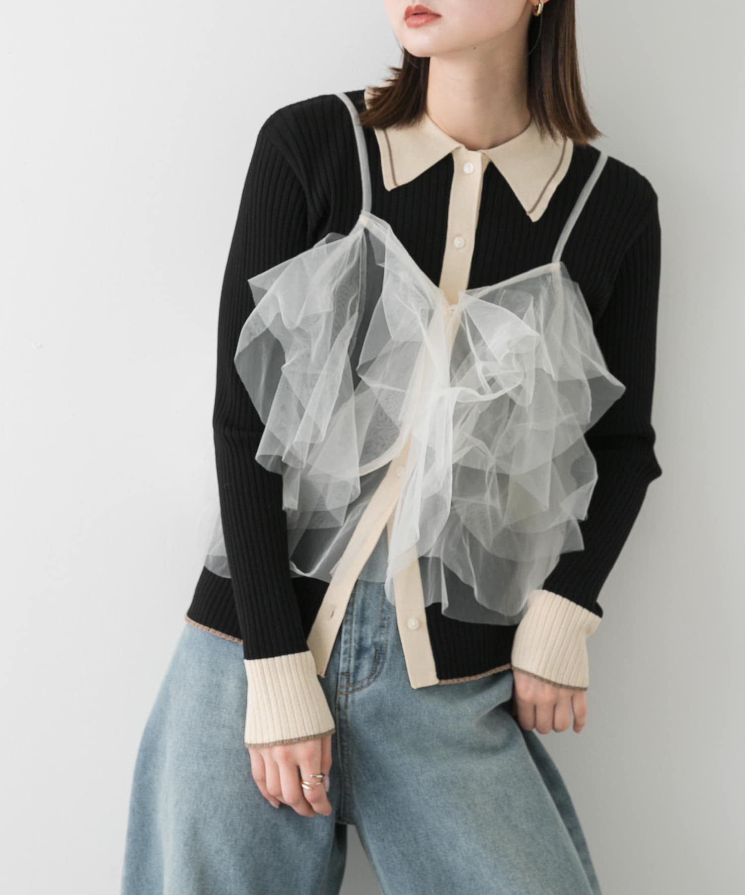 SENSE OF PLACEバイカラーエリツキコンパクトカーディガン