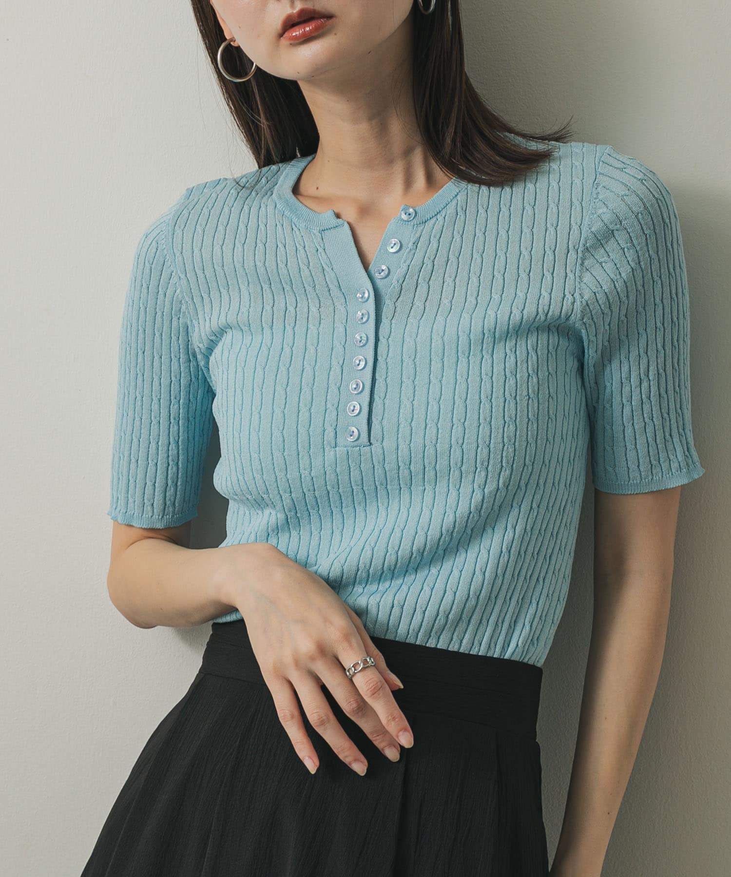 SENSE OF PLACEヘンリーネックミニケーブルセーター(半袖)- カラー: